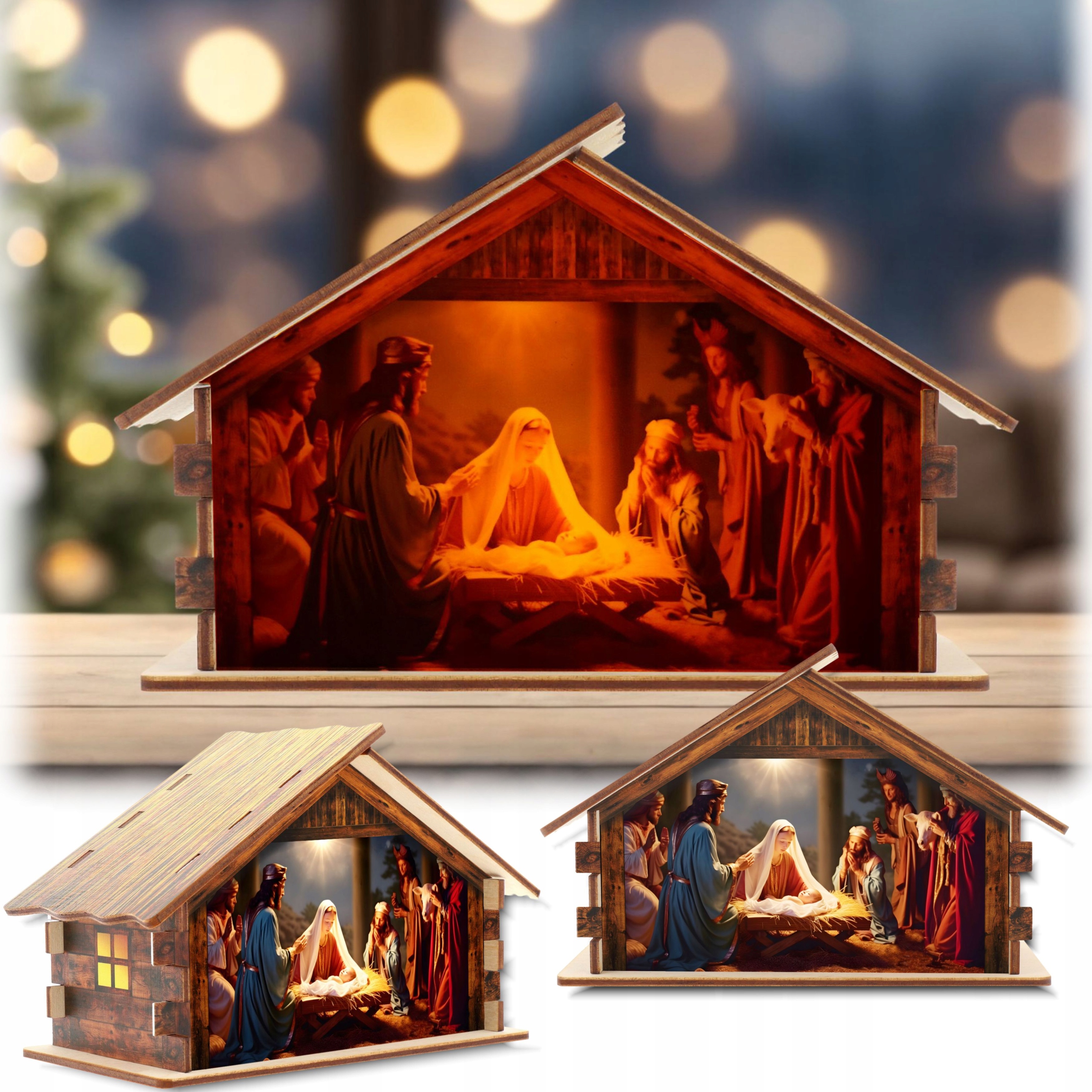 Сцены Рождества, изготовленные с использованием специальной проницаемой печати по свету , обеспечивая глубину освещенных символов и чрезвычайно привлекательный внешний вид