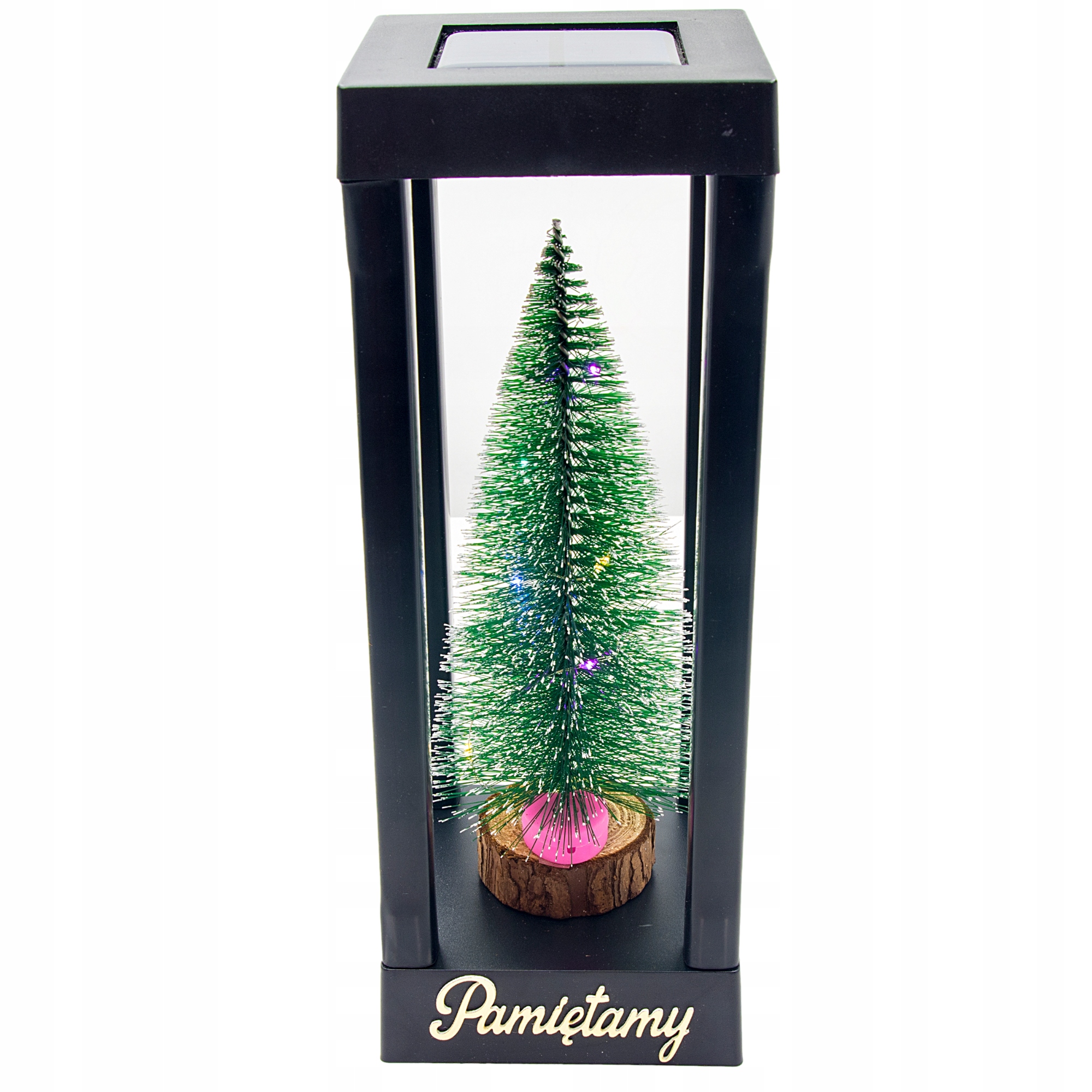 - После наступления темноты, благодаря встроенной солнечной панели фонарь автоматически освещается теплым белым светом сверху, а изящная рождественская елка внутри сверкает разноцветными светодиодными точками, создавая уникальный атмосферный эффект.