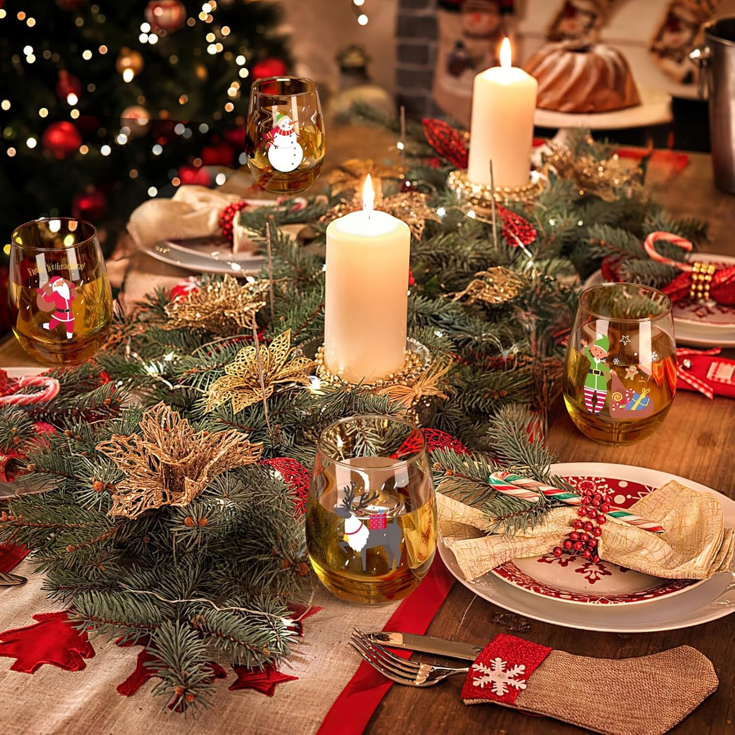 Набор из четырех прозрачных бокалов, украшенных рождественскими иллюстрациями, привнесет на стол неповторимую зимнюю атмосферу ❄️. Каждый из них имеет свой мотив, что делает их идеальными для семейных встреч и праздничных тостов 🥂.
