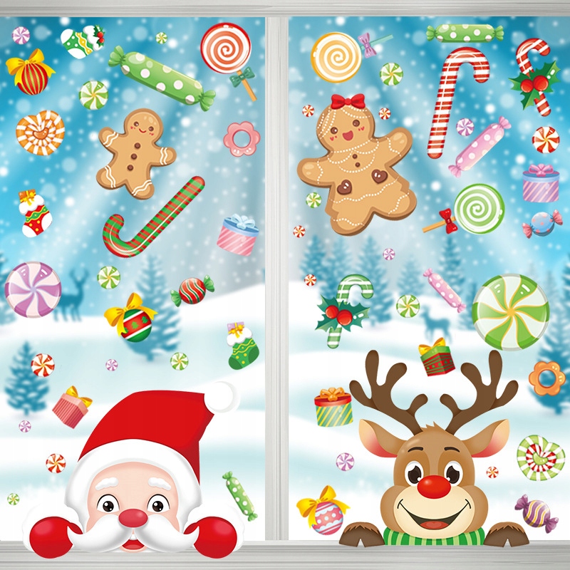 Рождественские наклейки украшения для окна Большой Санта -Клаус и оленя для детей h2>