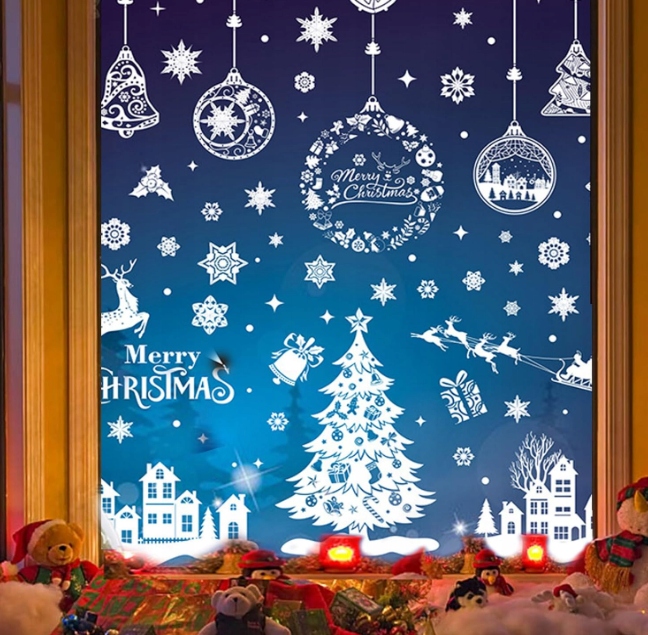 - Широкое применение: рождественские наклейки на окна можно наносить на окна, зеркала, двери, стеклянные двери и витрины магазинов. Чтобы продлить срок их службы, не прикрепляйте их к шероховатым или неровным поверхностям, таким как окрашенные, пыльные или шероховатые стены