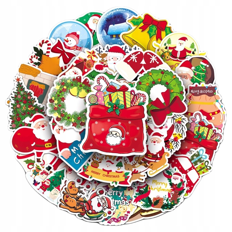 САМОКЛЕЯЩИЕСЯ РОЖДЕСТВЕНСКИЕ НАКЛЕЙКИ УКРАШЕНИЯ ДЛЯ РОЖДЕСТВЕНСКОЙ ЕЛКИ САНТА 52 ШТ. МИКС