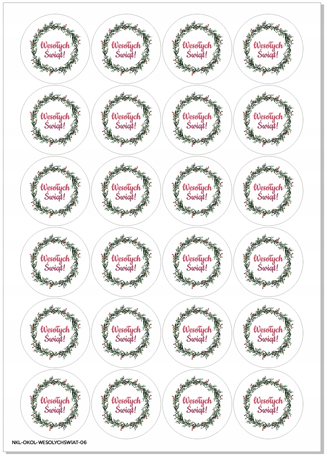 "Новогодние наклейки - ВЕНОК" (40мм, 24 шт.)