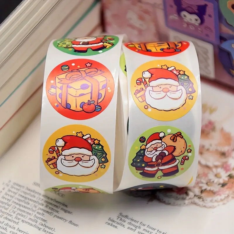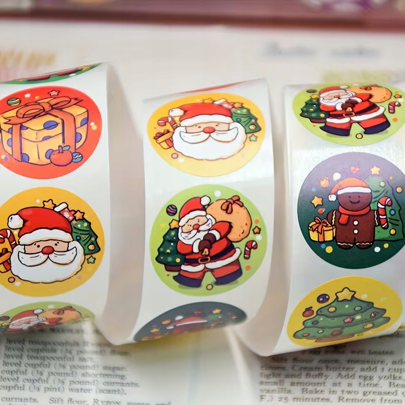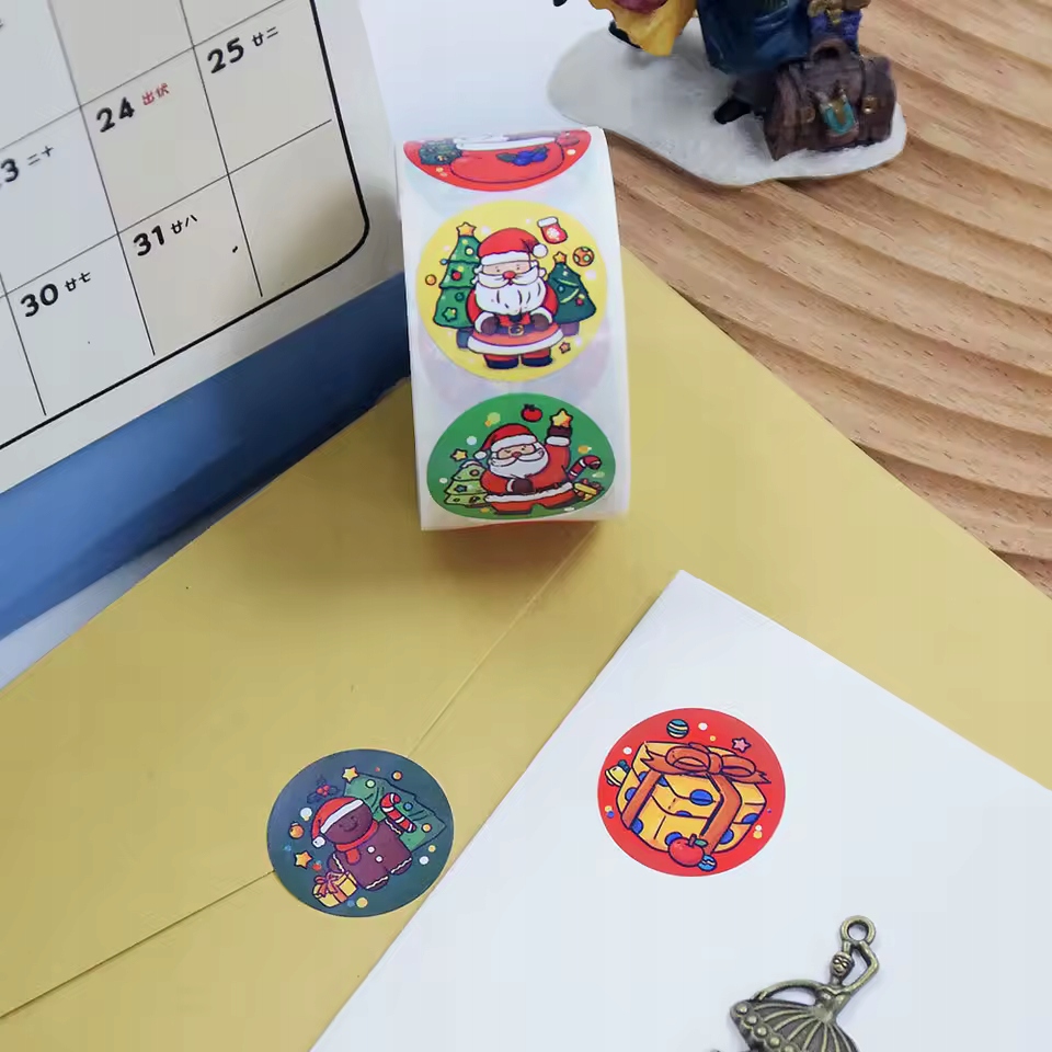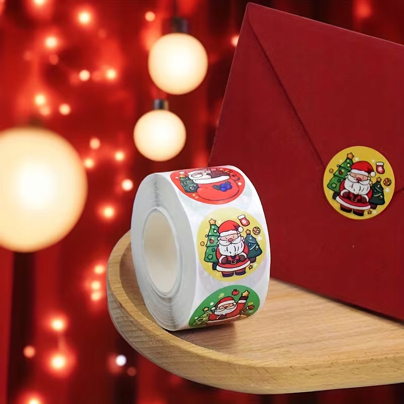 РОЖДЕСТВЕНСКИЕ НАКЛЕЙКИ ДЛЯ ПОДАРКОВ ДЕКОРАТИВНЫЕ УПАКОВКИ РОЖДЕСТВЕНСКИЙ КРУГЛЫЙ РУЛОН 500 шт.