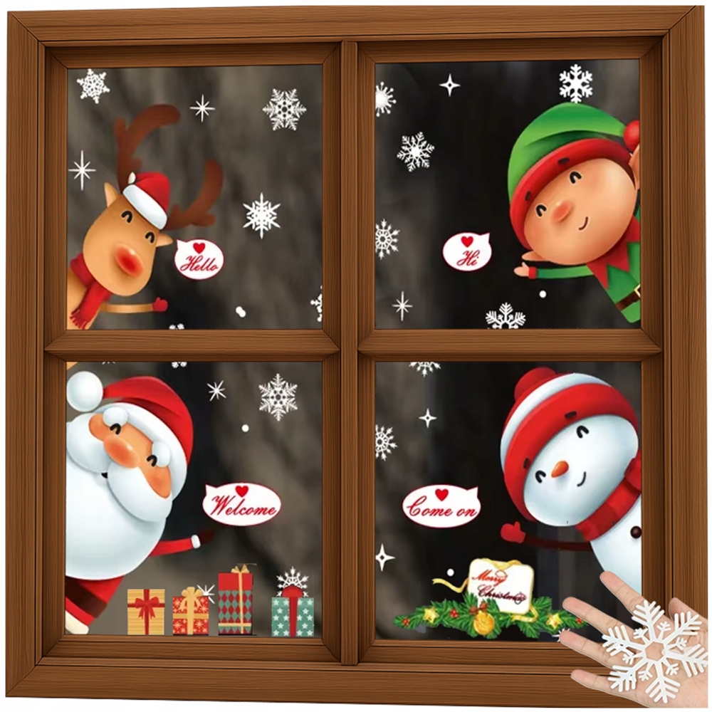 РОЖДЕСТВЕНСКИЕ НАКЛЕЙКИ НА ОКНА - САНТА, ОЛЕНИ, СНЕЖИНКИ, ЭЛЬФ, СНЕЖИК