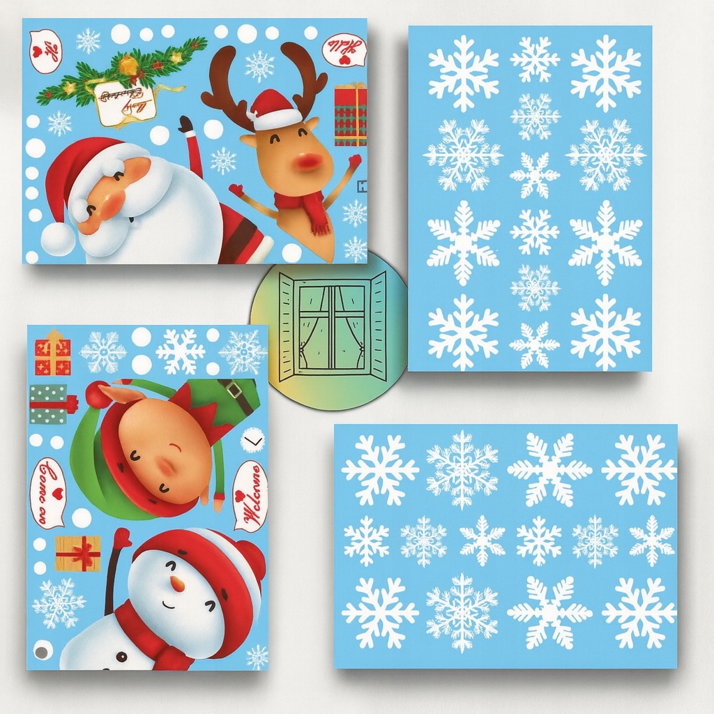 РОЖДЕСТВЕНСКИЕ НАКЛЕЙКИ НА ОКНА САНТА СНЕЖИНКИ ОЛЕНЬ 4 ЛИСТА ЭЛЬФ