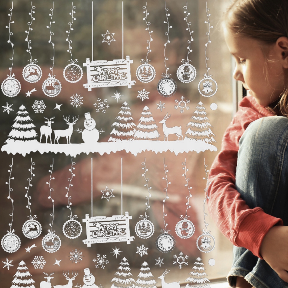 ✅Идеальное украшение с традиционными мотивами, такими как Санта-Клаусы , снежинки, олени красиво смотрятся на окнах или других плоских поверхностях, например: шкаф, зеркало, дверь, плитка, холодильник.