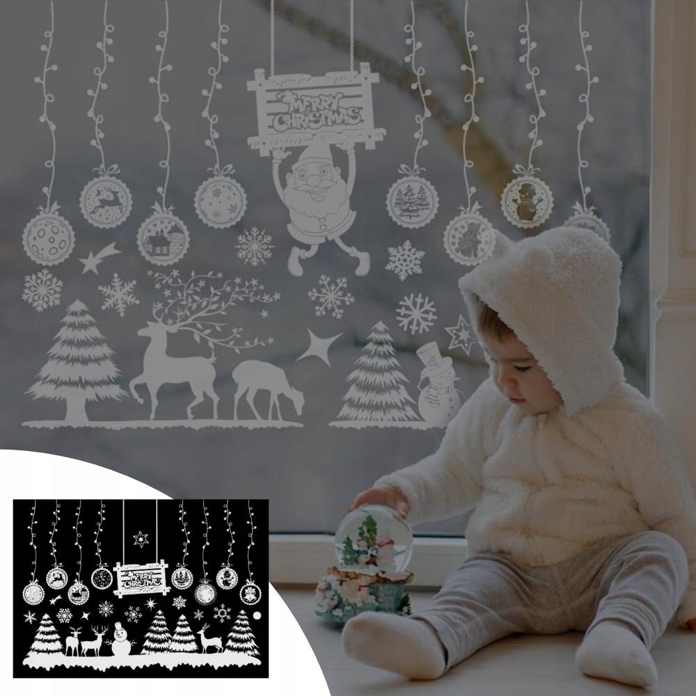РОЖДЕСТВЕНСКИЕ НАКЛЕЙКИ УКРАШЕНИЯ ОКОН СНЕЖИНКИ САНТА-КЛАУСА