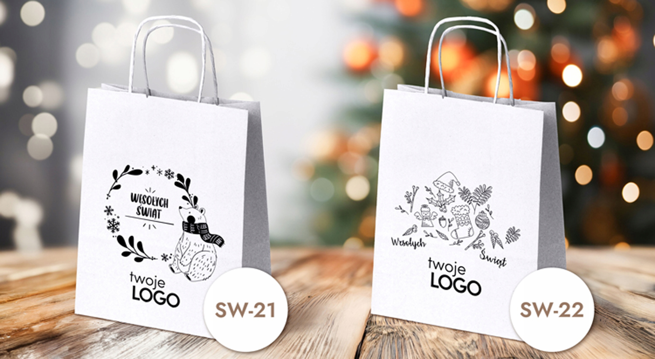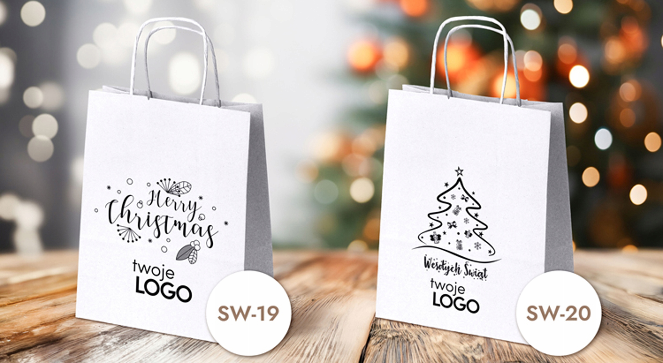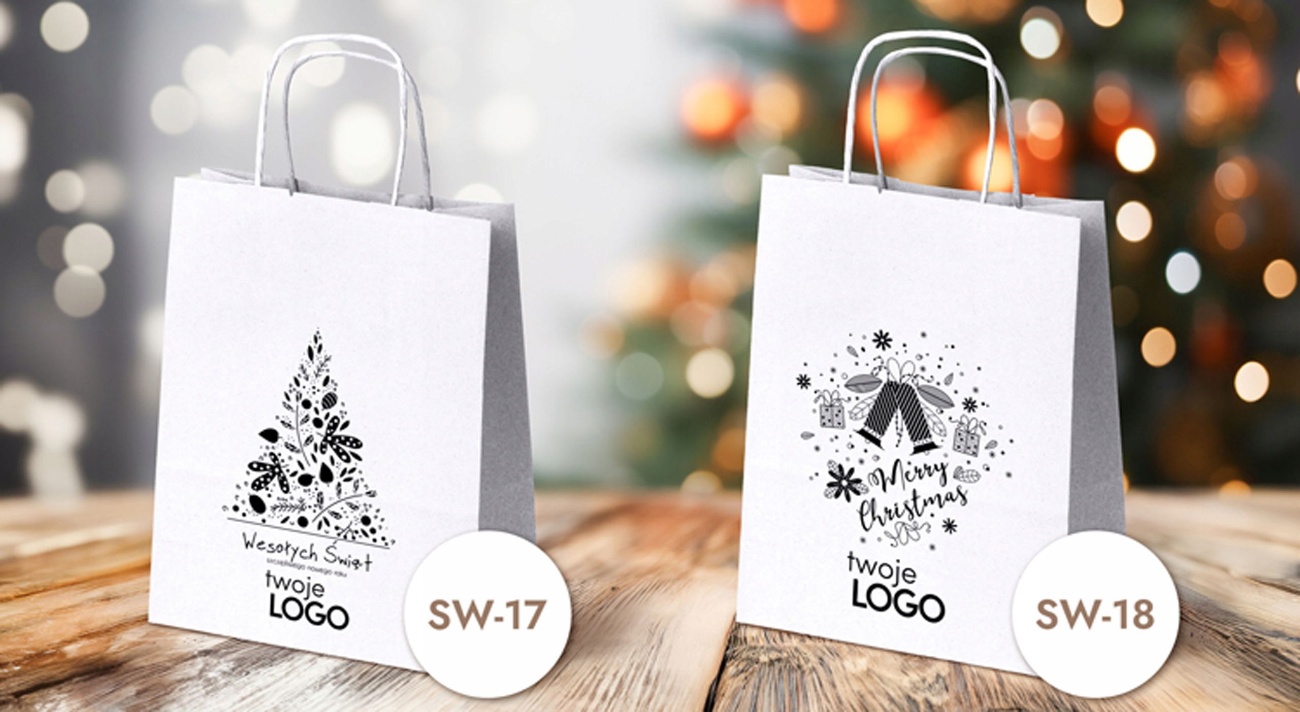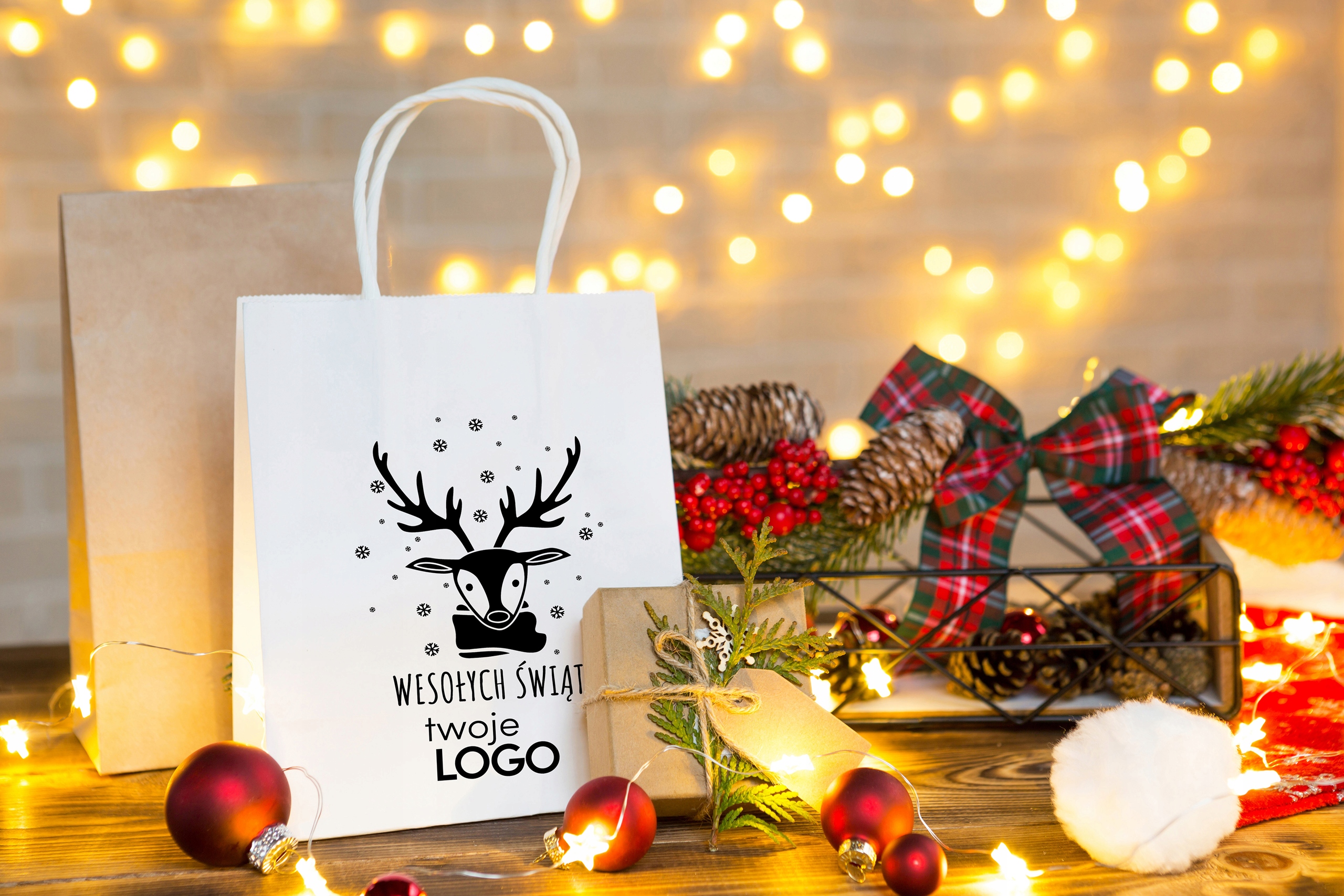 РОЖДЕСТВЕНСКИЕ ПОДАРОЧНЫЕ ПАКЕТЫ 18х8х22,5 см ЛОГОТИП ВАШЕЙ КОМПАНИИ 50 шт. ВЫБОР