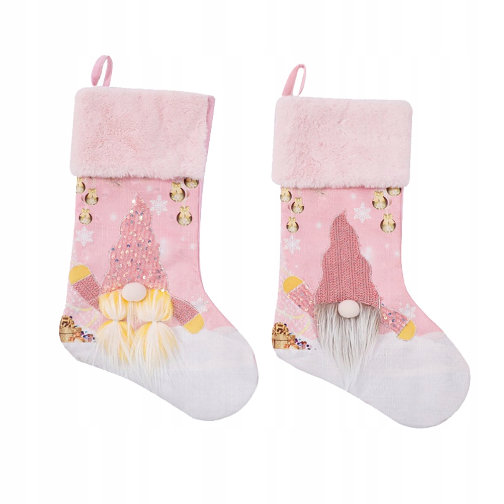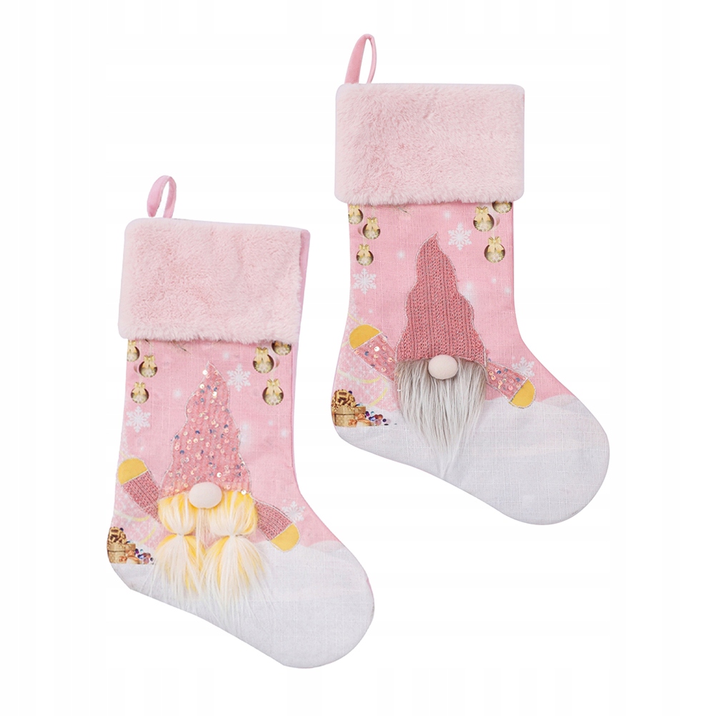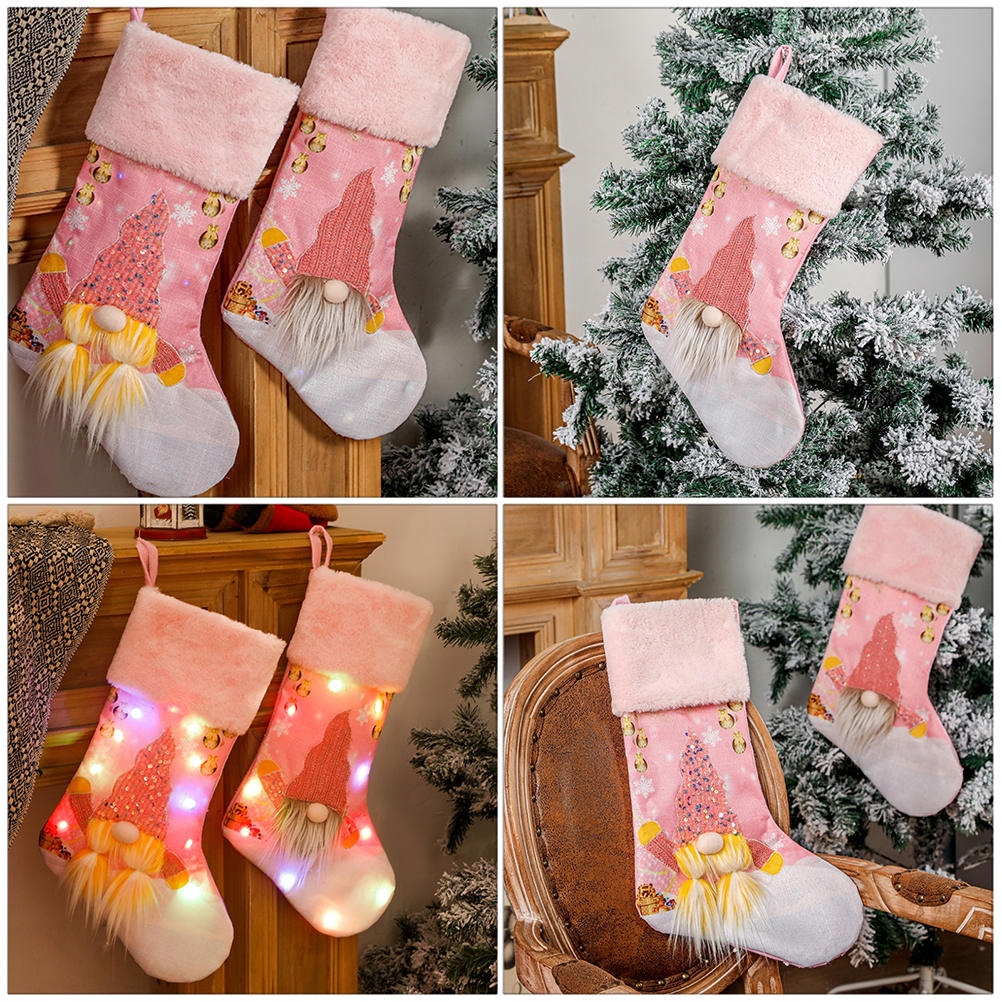 РОЖДЕСТВЕНСКИЕ ЧУЛКИ С ОГНЕВАМИ РОЗОВЫЕ ДОМАШНИЙ ДЕКОР СВЕТЯЩИЕСЯ НОСКИ 2 ШТ.