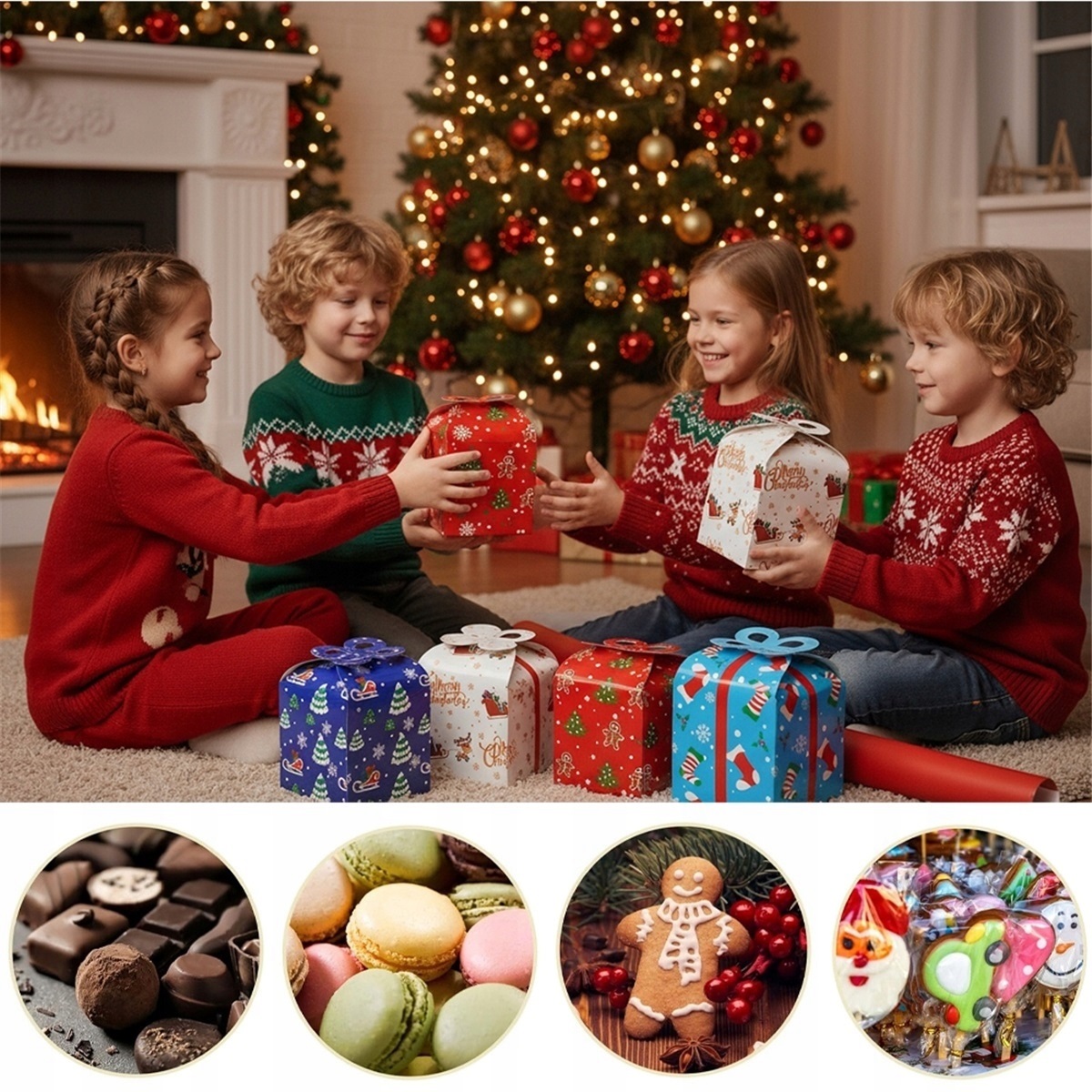 РОЖДЕСТВЕНСКИЕ ПОДАРОЧНЫЕ КОРОБКИ 24 ШТ ДЛЯ ШОКОЛАДА И СЛАДОСТЕЙ