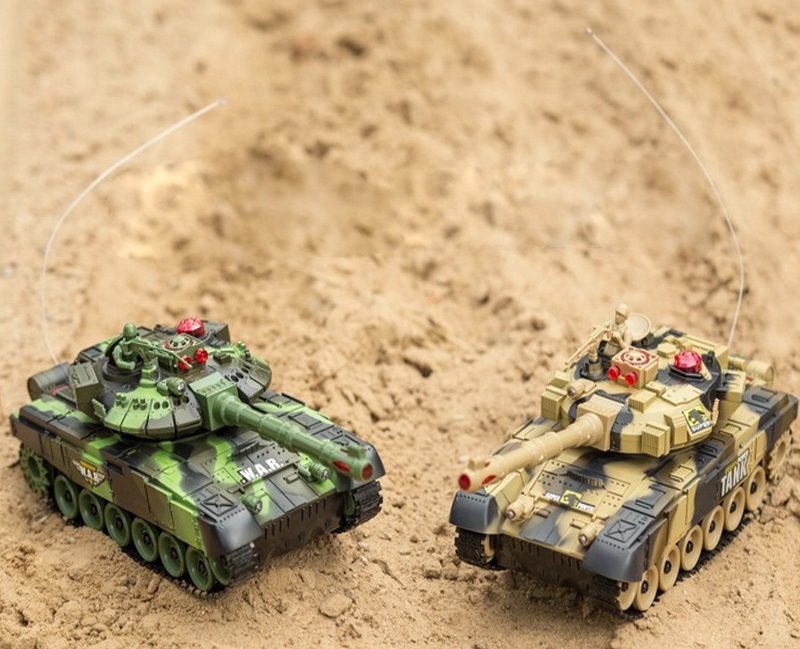 Танки имеют разные частоты (27 МГц и 40 МГц) , что позволяет двум людям играть одновременно . Танк имеет счетчик, указывающий количество попаданий, после 4 точных выстрелов выигрывает битва, а проигравший танк иммобилизован в течение 30 секунд, после этого времени вы можете возобновить бой.