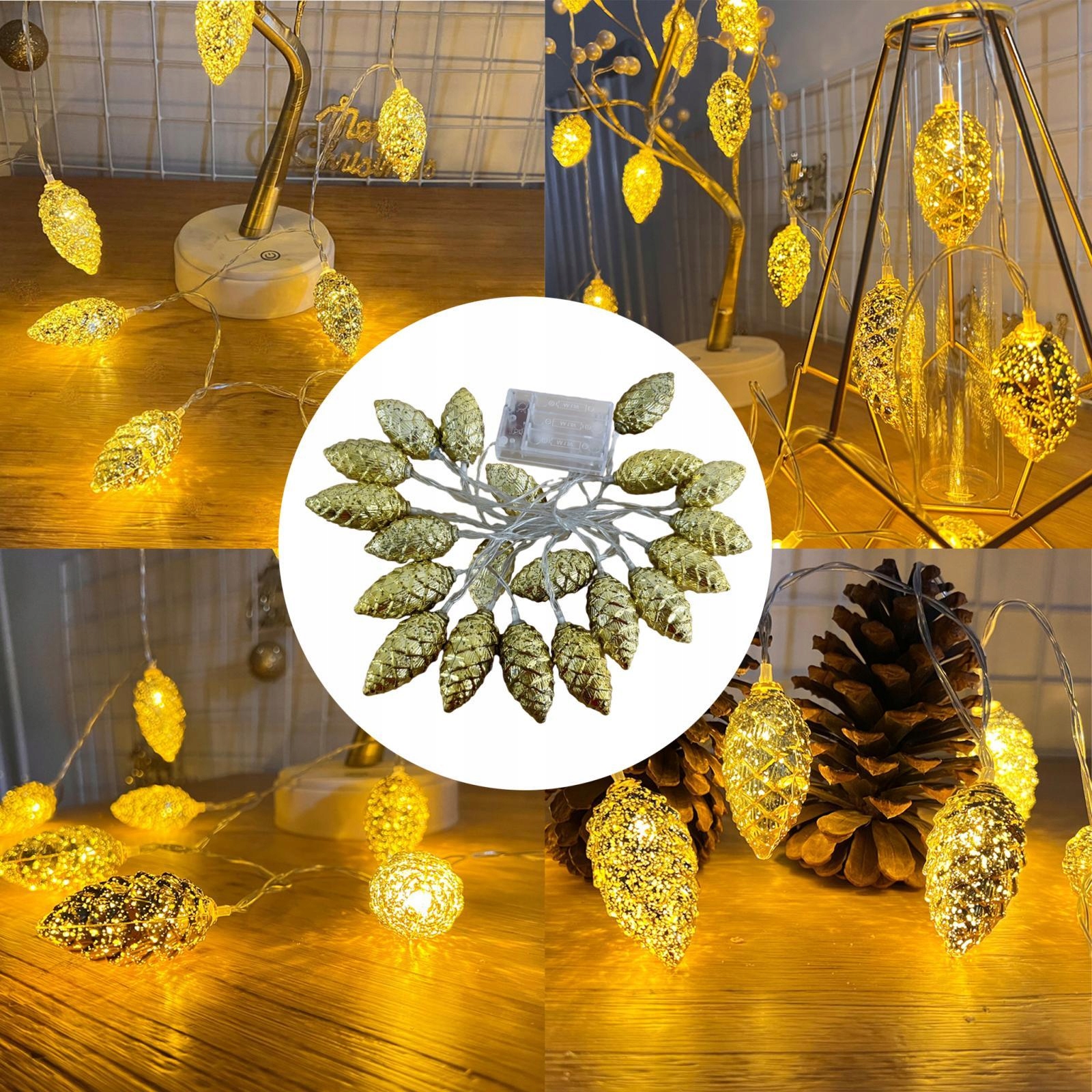 Рождественские гирлянды из сосновых шишек Светодиодные гирлянды для украшения столешницы патио 300 см 20 лампочек