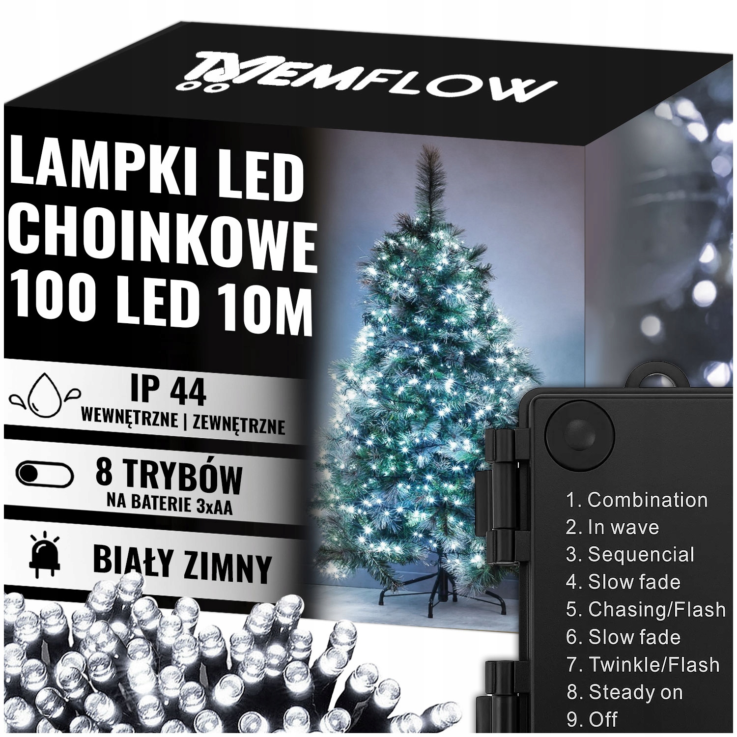 🎄 РОЖДЕСТВЕНСКИЕ ОГНИ 100 LED 10 М - ХОЛОДНЫЙ БЕЛЫЙ, РАБОТАЕТ ОТ АККУМУЛЯТОРОВ