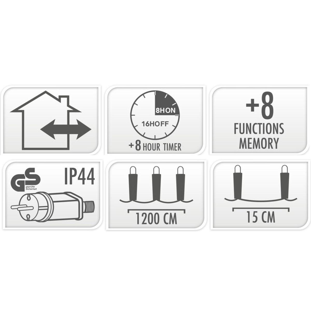 Занавес имеет выбор из 8 различных режимов освещения, благодаря которого вы создадите уникальное и уникальное украшение. Последовательности могут быть переключены благодаря специальной кнопке на источнике питания.