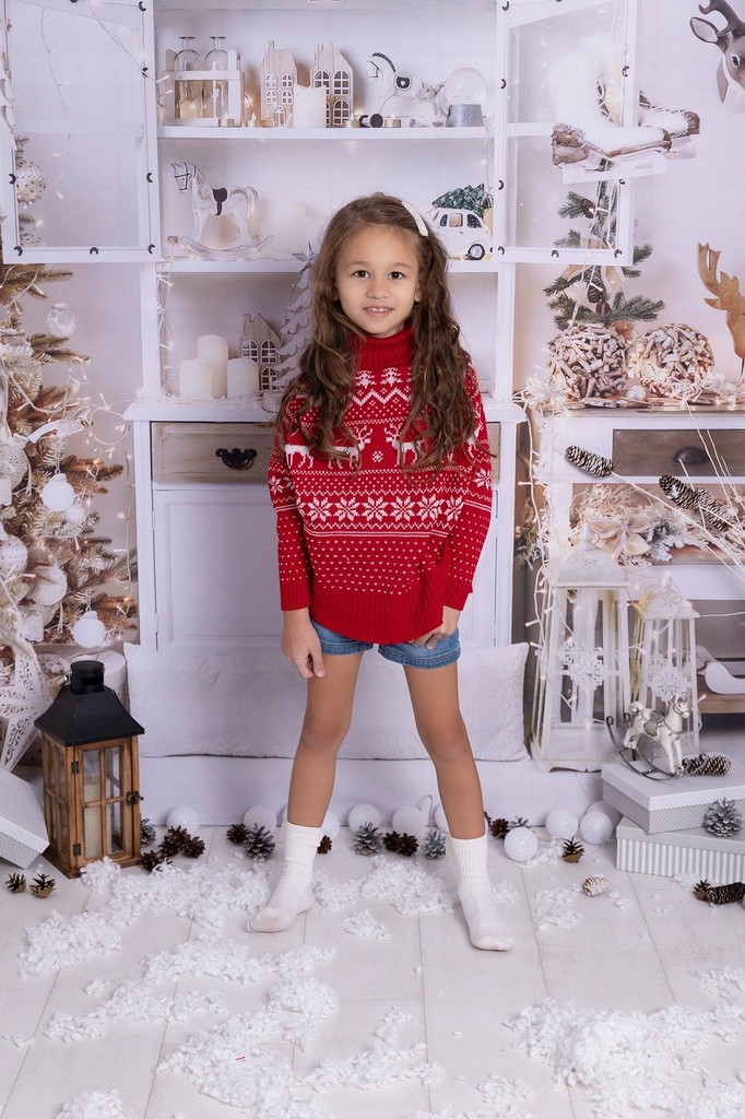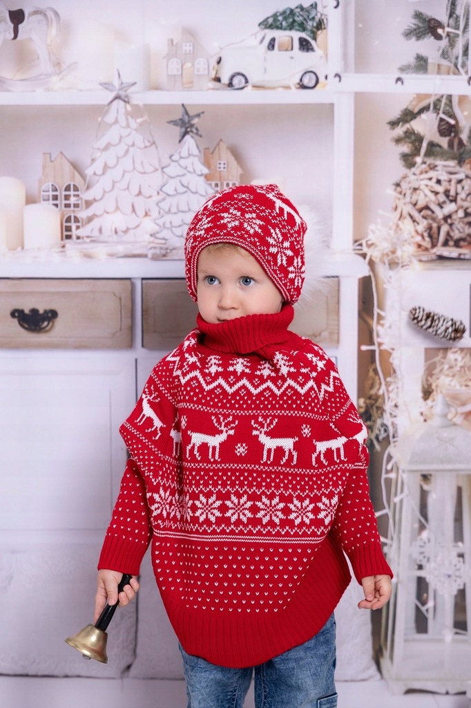 Рождественский красный свитер-пончо для детей UNISIZE 98-122 СМ
