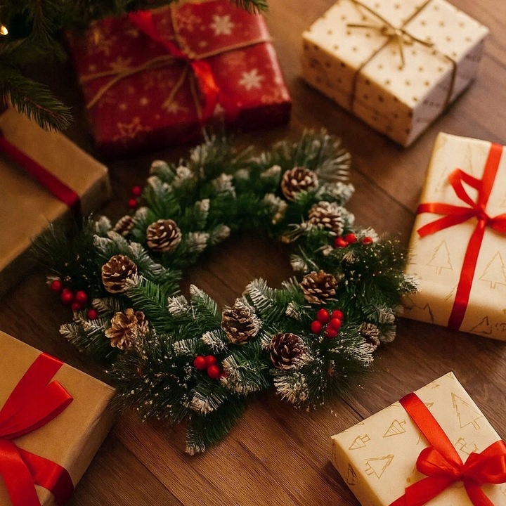 ➡️ РЕАЛИСТИЧЕСКИЕ ХВОЙНЫЕ ВЕТВИ - изготовлены из высококачественного материала, точно имитирующего натуральную еловую хвою. Благодаря им венок выглядит богато и нарядно на протяжении многих сезонов.