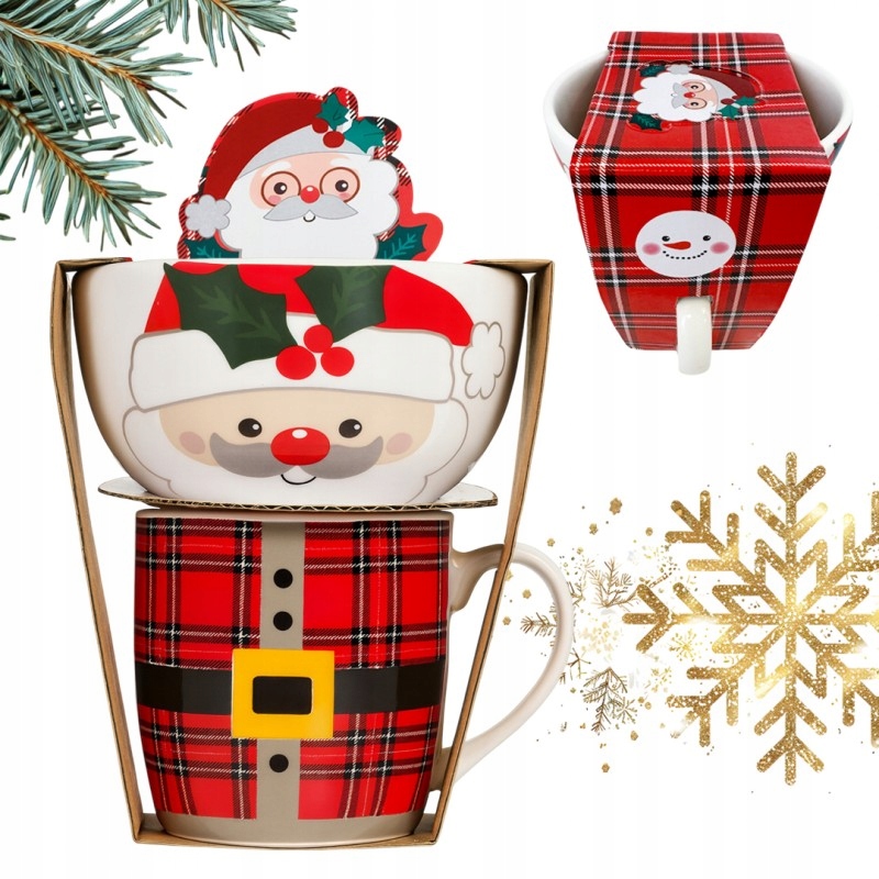 РОЖДЕСТВЕНСКИЙ НАБОР - КРУЖКА 350 МЛ И ЧАША 400 МЛ - САНТА - ЧЕК