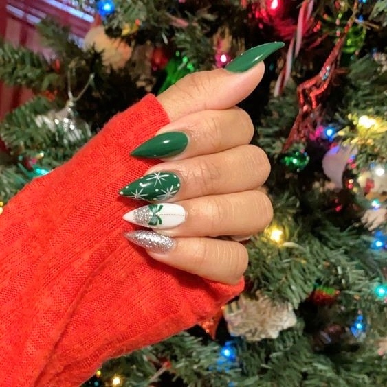 Перенос праздничных узоров на стилизации, стразы и нежные аксессуары с блестками позволит вам создать привлекательный маникюр, соответствующий вашему настроению. курортный сезон. Засияйте к Рождеству, сочинив эффектные украшения, которые сделают ваши ногти красивыми в свете свечей и елочных огней.