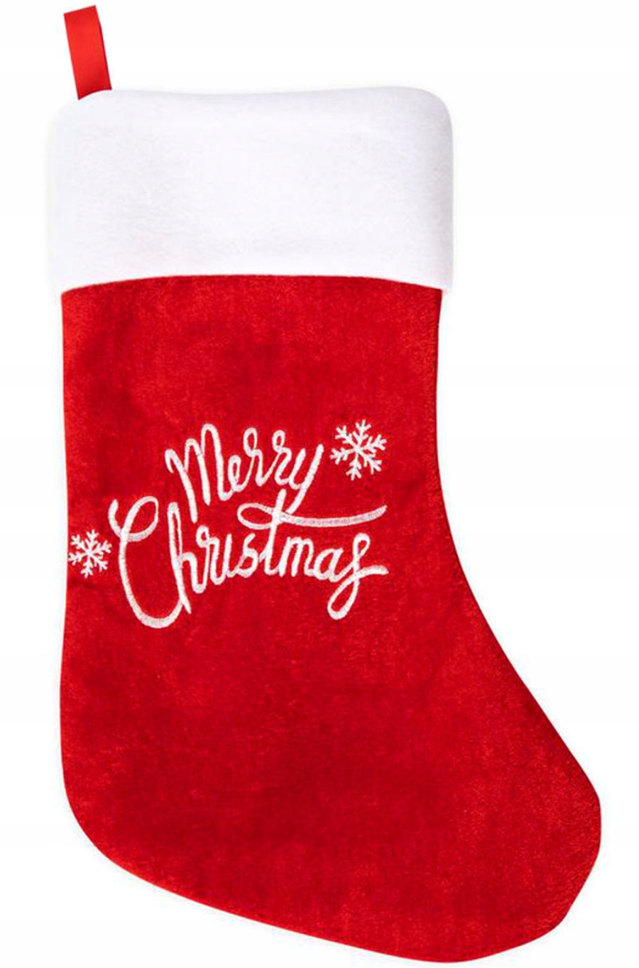 Впустите дух Рождества в свой дом: этот элегантный и классический подарочный чулок красного цвета, украшенный белой манжетой и надписью «Merry Christmas», станет прекрасным дополнением. к любому рождественскому украшению. Две белые снежинки дополнительно подчеркивают его очаровательный, праздничный характер.