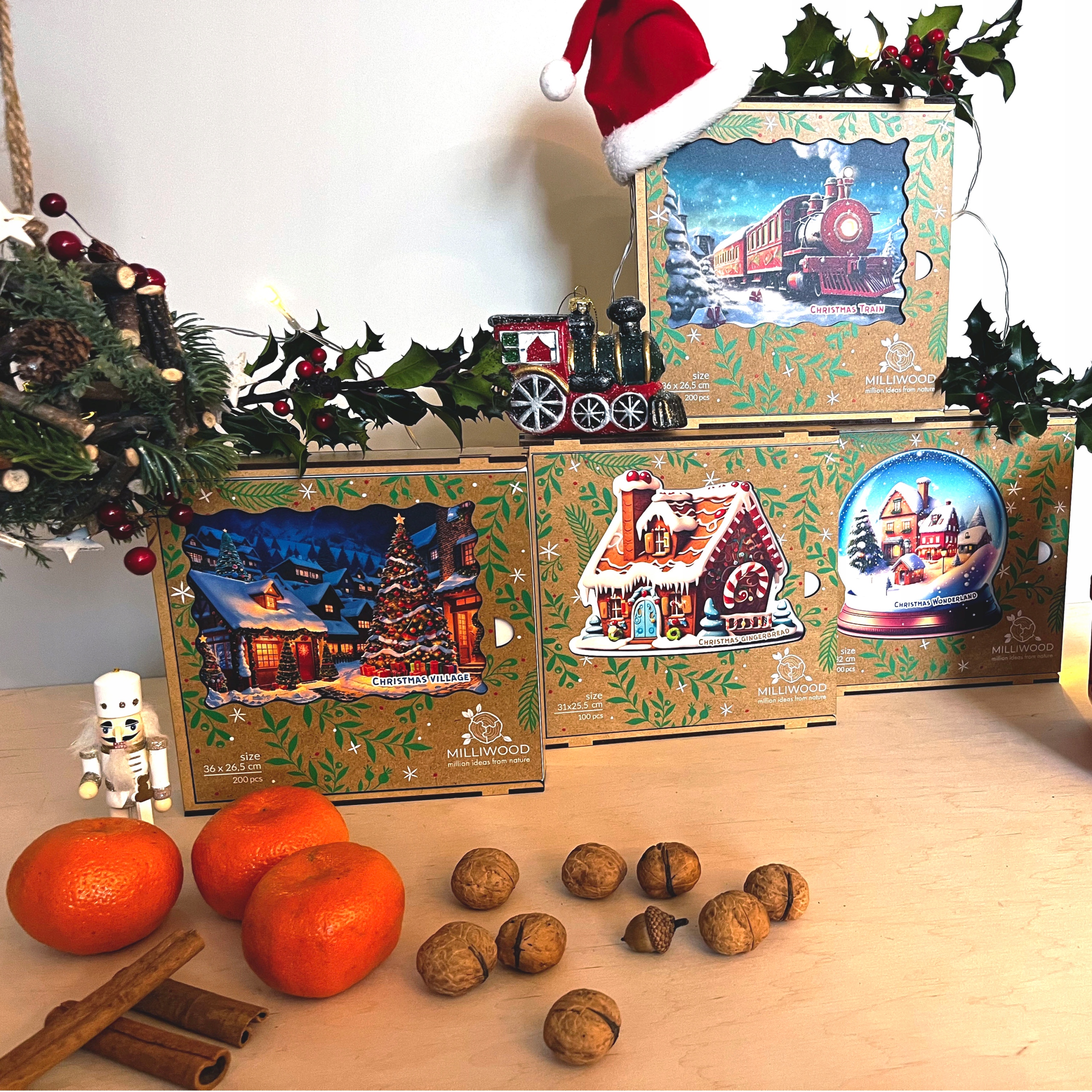 Різдвяний пазл Milliwood - Дерев'яний - Різдвяний поїзд - 200 ел.