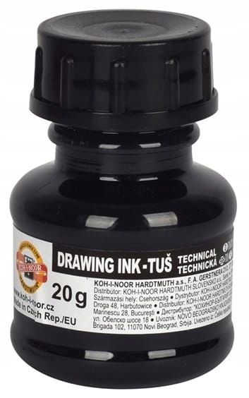 - Черная тушь. Черные чернила имеют превосходное 100% покрытие. Прекрасно работает по кальке, бумаге и картону. Наносится стилусом, кистью или ручкой. Рекомендуется для рисовальщиков и рисовальщиков. Предназначен для рисования, художественных и декоративных целей. Упаковка: флакон 20 г.