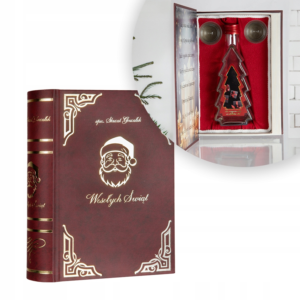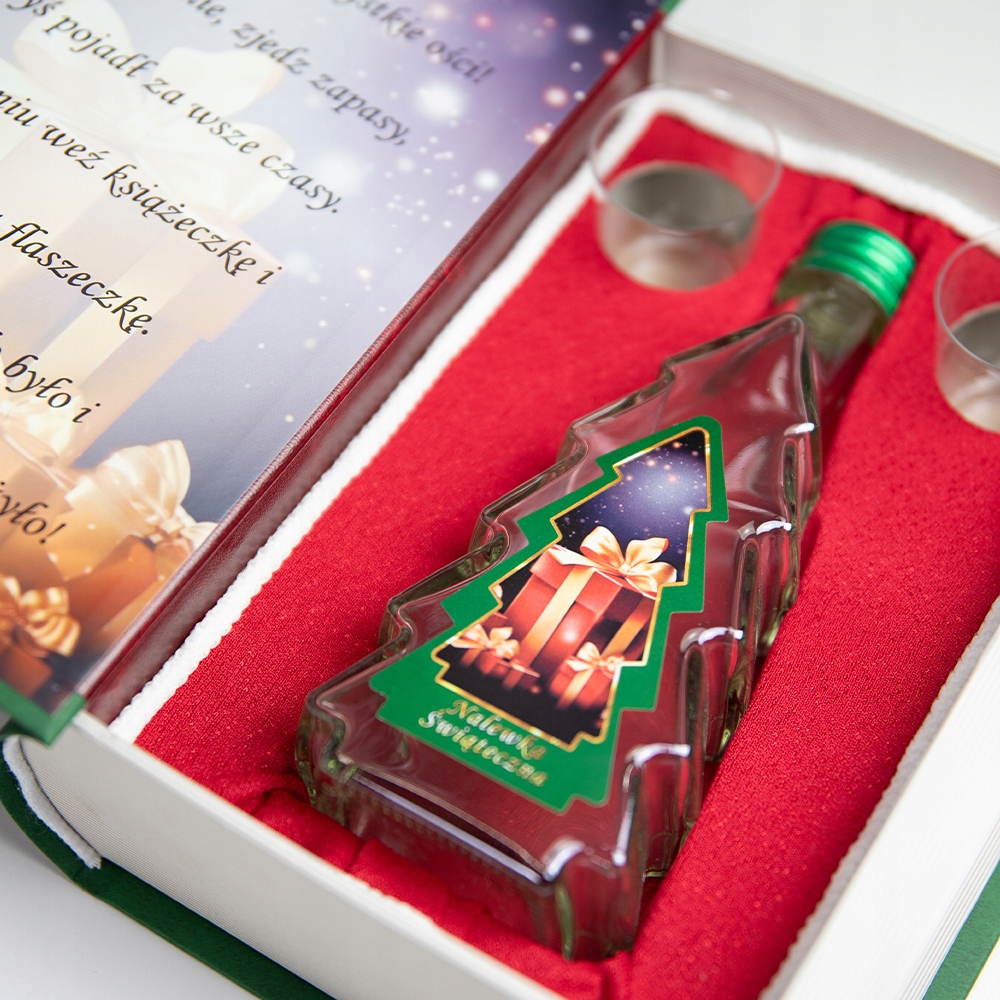 Ищете необычный, универсальный рождественский подарок, который поднимет настроение вашим близким и сделает эти моменты еще более особенными? Наша рождественская книга об алкоголе — идеальное решение. Это не только элегантный подарок, но и носитель особенных моментов и воспоминаний. Доступен в трех разных узорах и цветах: красный с Санта-Клаусом, зеленый с оленем и черный с елкой. Внутри каждой бутылки находится уникальная бутылка в форме елочки с рождественской этикеткой и два стакана. Благодаря этому достаточно наполнить бутылку выбранным содержимым, чтобы создать уникальный подарок.