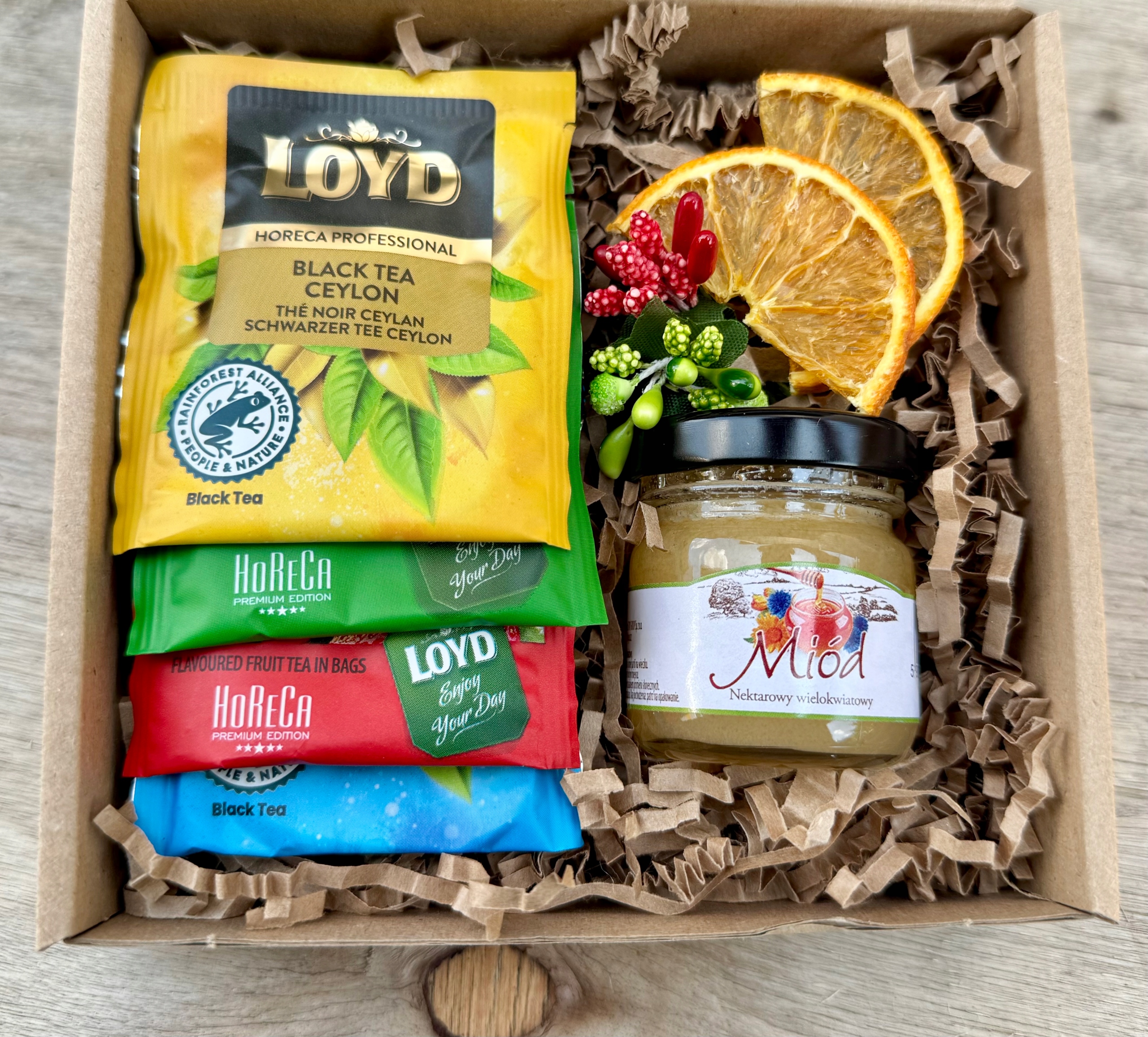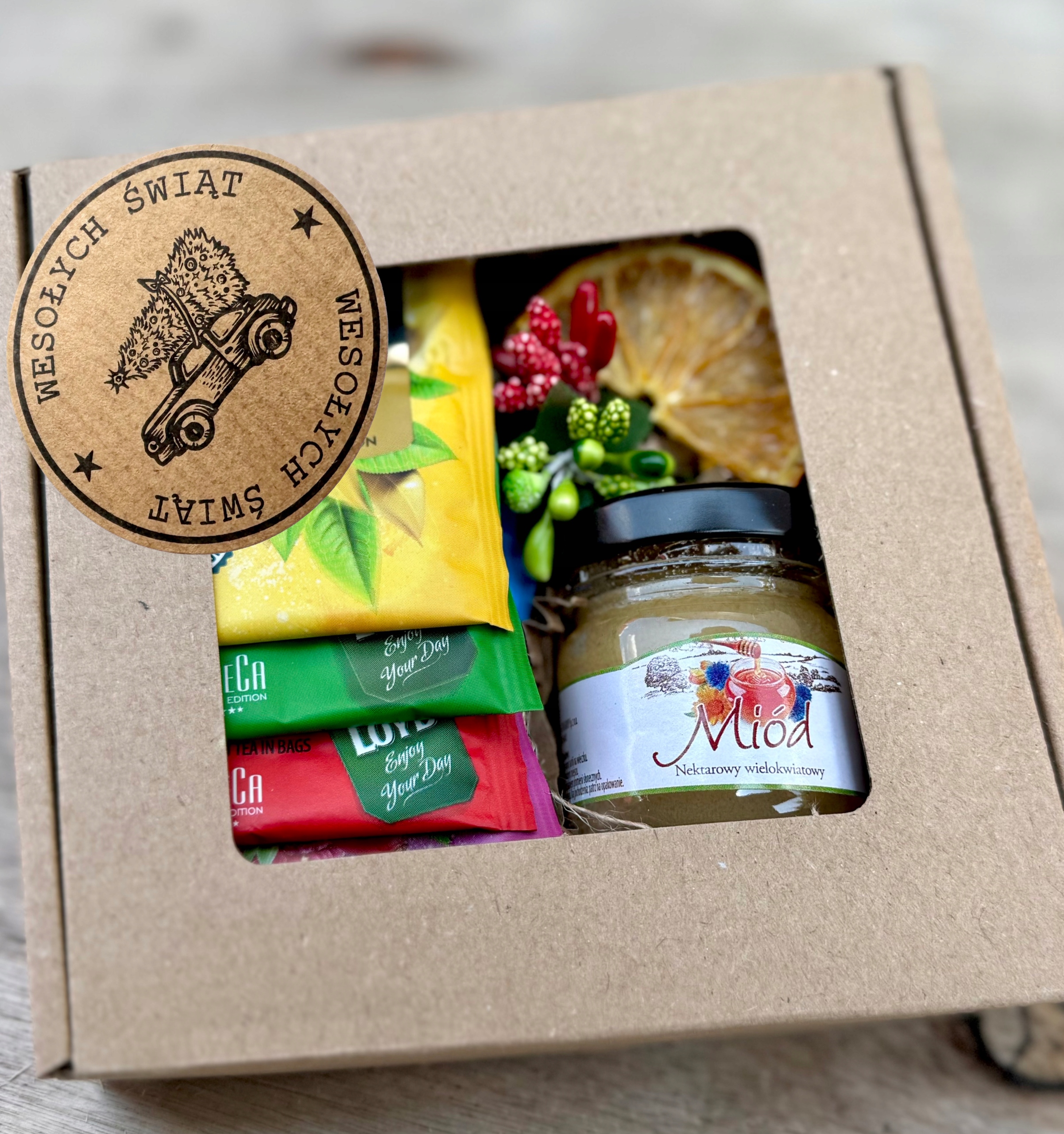 Рождественский подарок Рождественская коробка Подарочная корзина под елкой Медовый чай