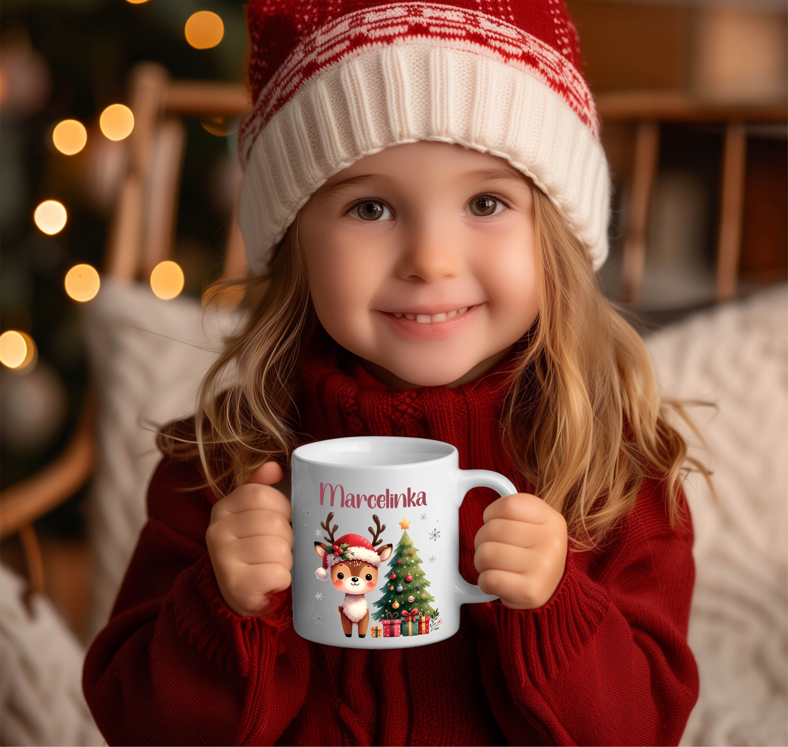 ⭐️ПОДАРОЧНАЯ КРУЖКА НА РОЖДЕСТВО РОЖДЕСТВЕНСКИЙ ОЛЕНЬ С САНТА ЕЛКОЙ + имя⭐️