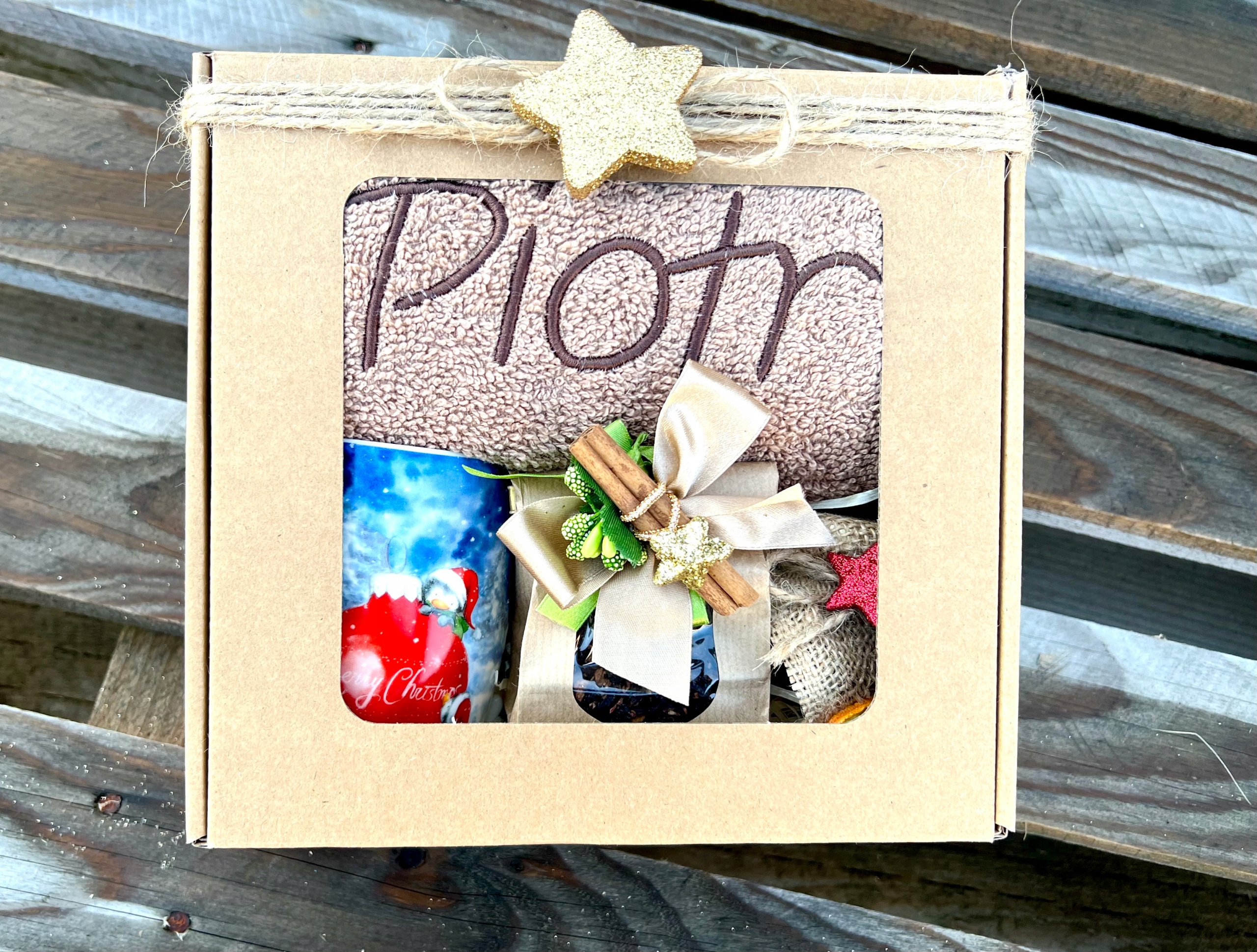 Уникальный новогодний подарок — набор: полотенце с вашей вышивкой, кружка и аксессуары. Элегантный и в то же время практичный набор, который понравится получателям.