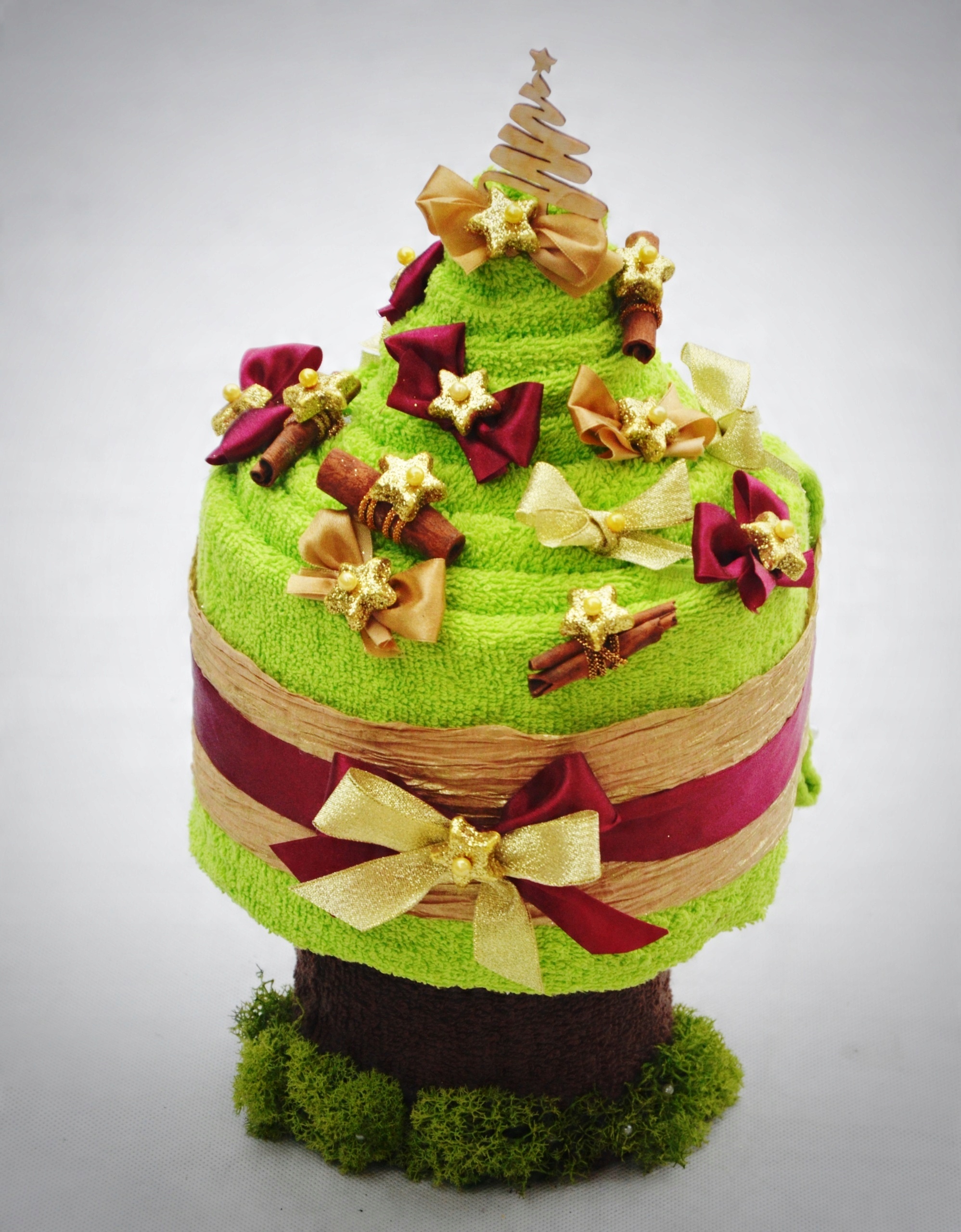 Оригинальный рождественский подарок — полотенца, свернутые в елку. Идеальный рождественский подарок для родителей, бабушек и дедушек, братьев и сестер и друзей.