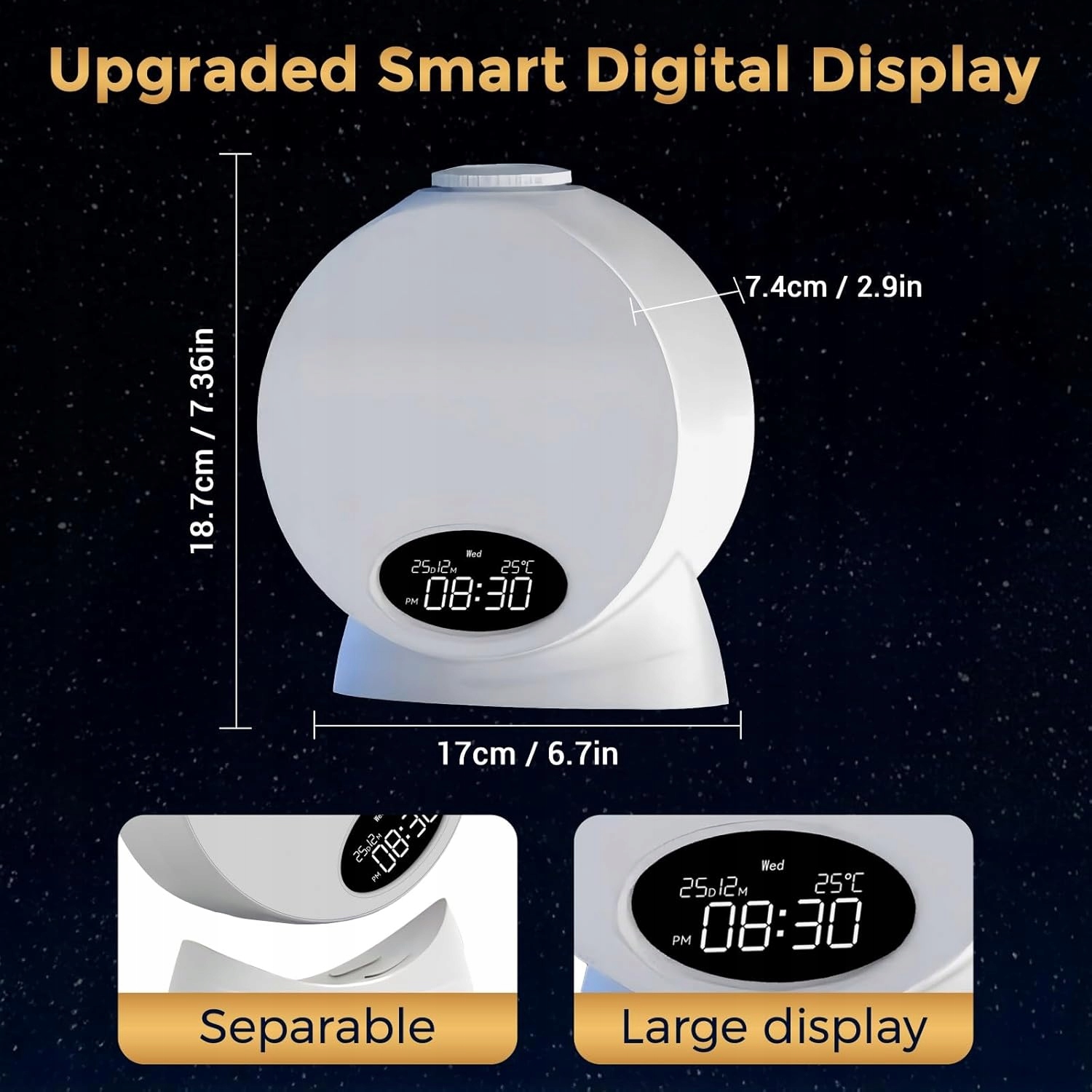 2 в 1: проектор Smart Star + ночные часы Превратите свою спальню в синий оазис, следя за временем! Этот модернизированный проектор сочетает в себе потрясающее звездное небо с цифровым дисплеем часов/календаря/температуры — идеально подходит для отдыха перед сном.