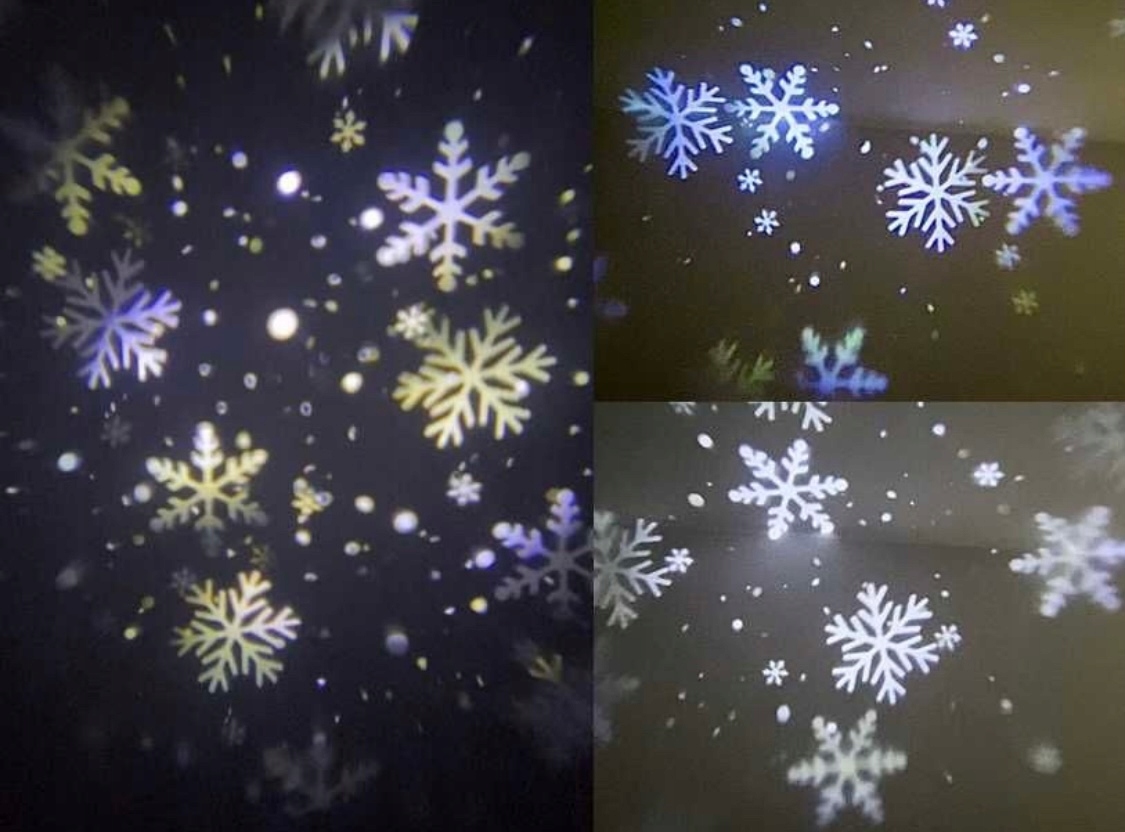 ✅ Устройство показывает белые, плавно движущиеся снежинки, которыми можно любоваться как на фасаде здания, так и в интерьере, например, в гостиной.