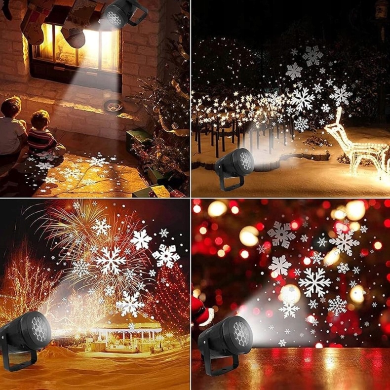 ⭐ СОЗДАВАЙТЕ ОСОБЫЕ МОМЕНТЫ - Светодиодный проектор - идеальное устройство, которое осветит ваш дом/квартиру и придаст ему уникальный вид. Он будет отображать белые движущиеся снежинки как на здании, так и на доме, например. в комнате. Движение лепестков спокойное. Это, безусловно, самый простой и быстрый способ украсить Рождество.