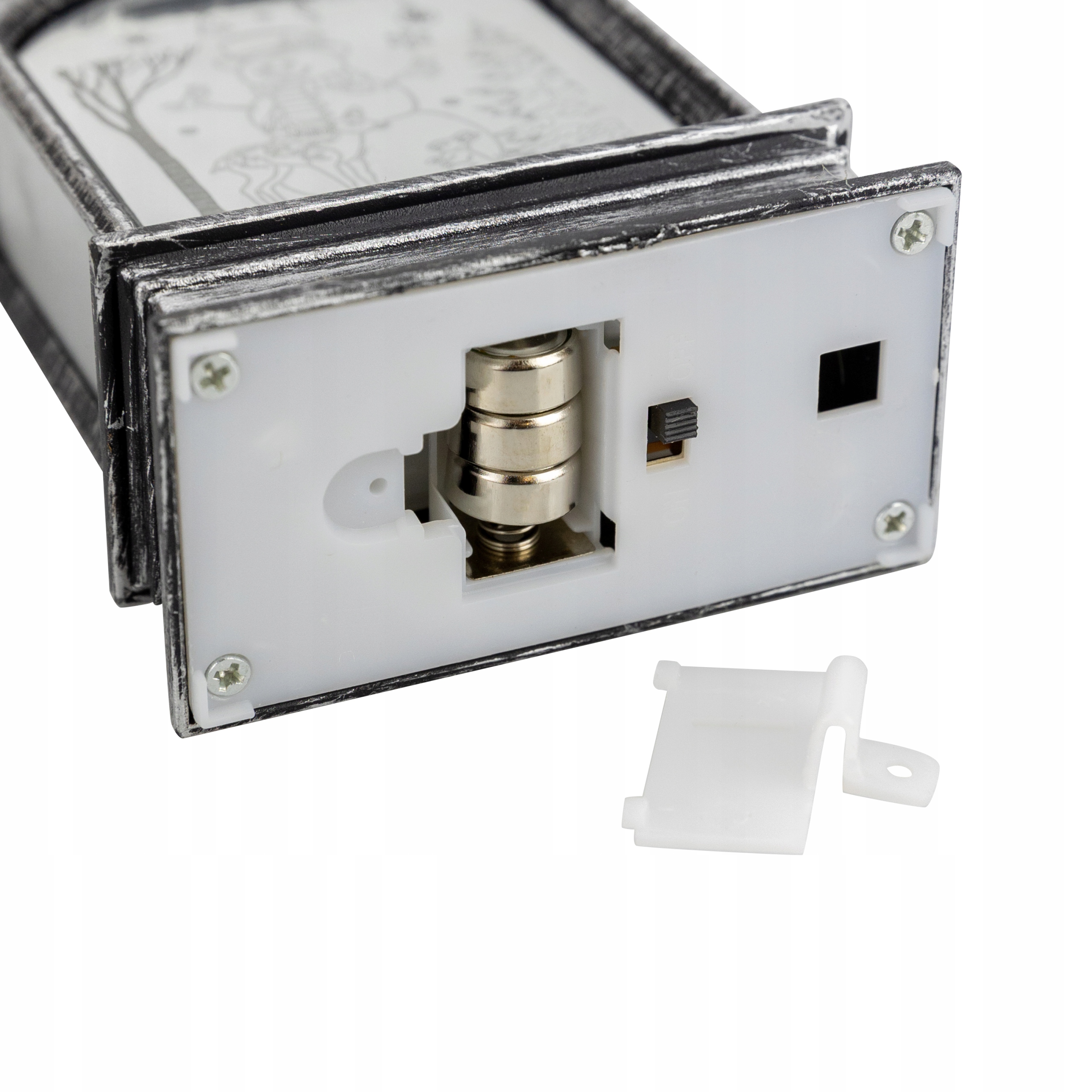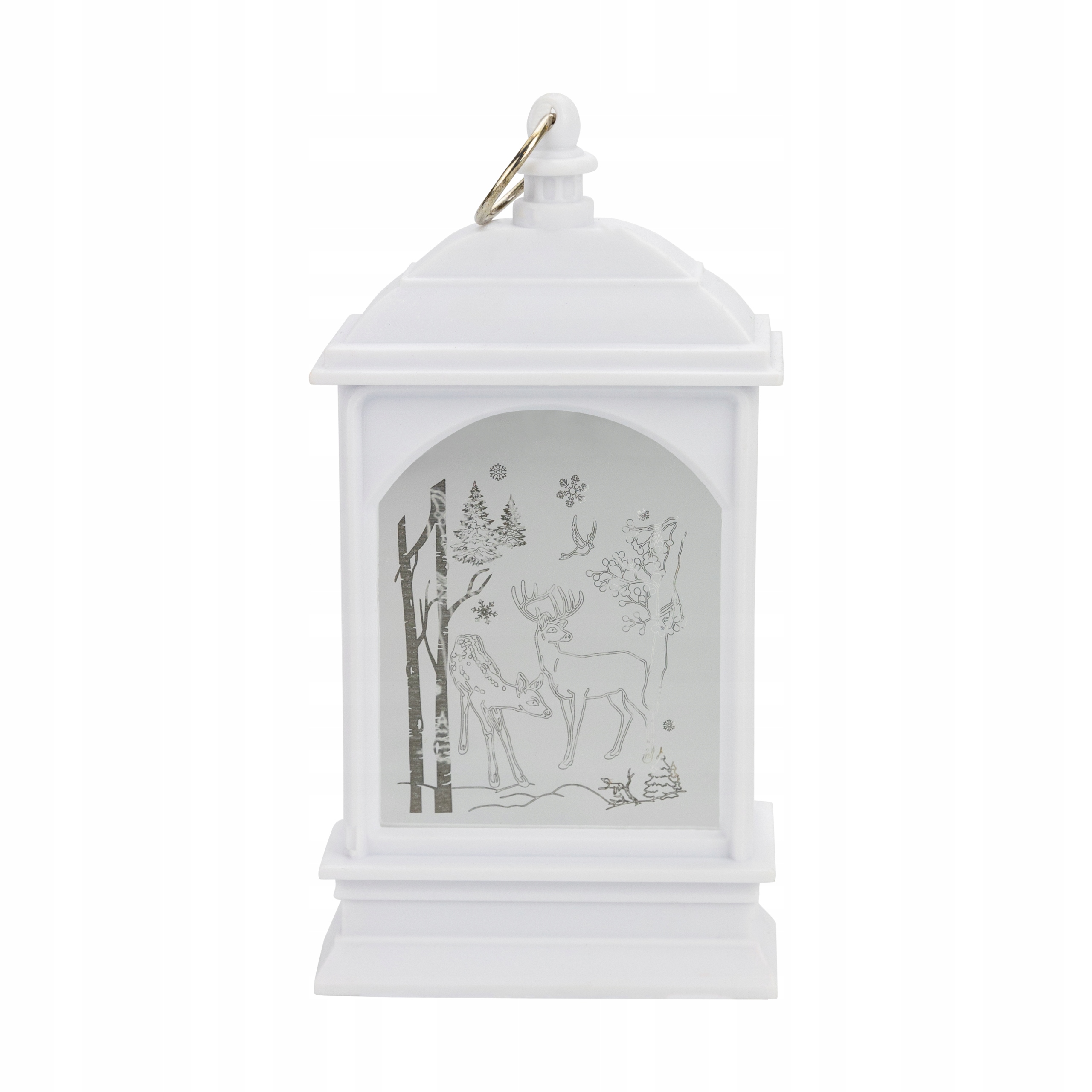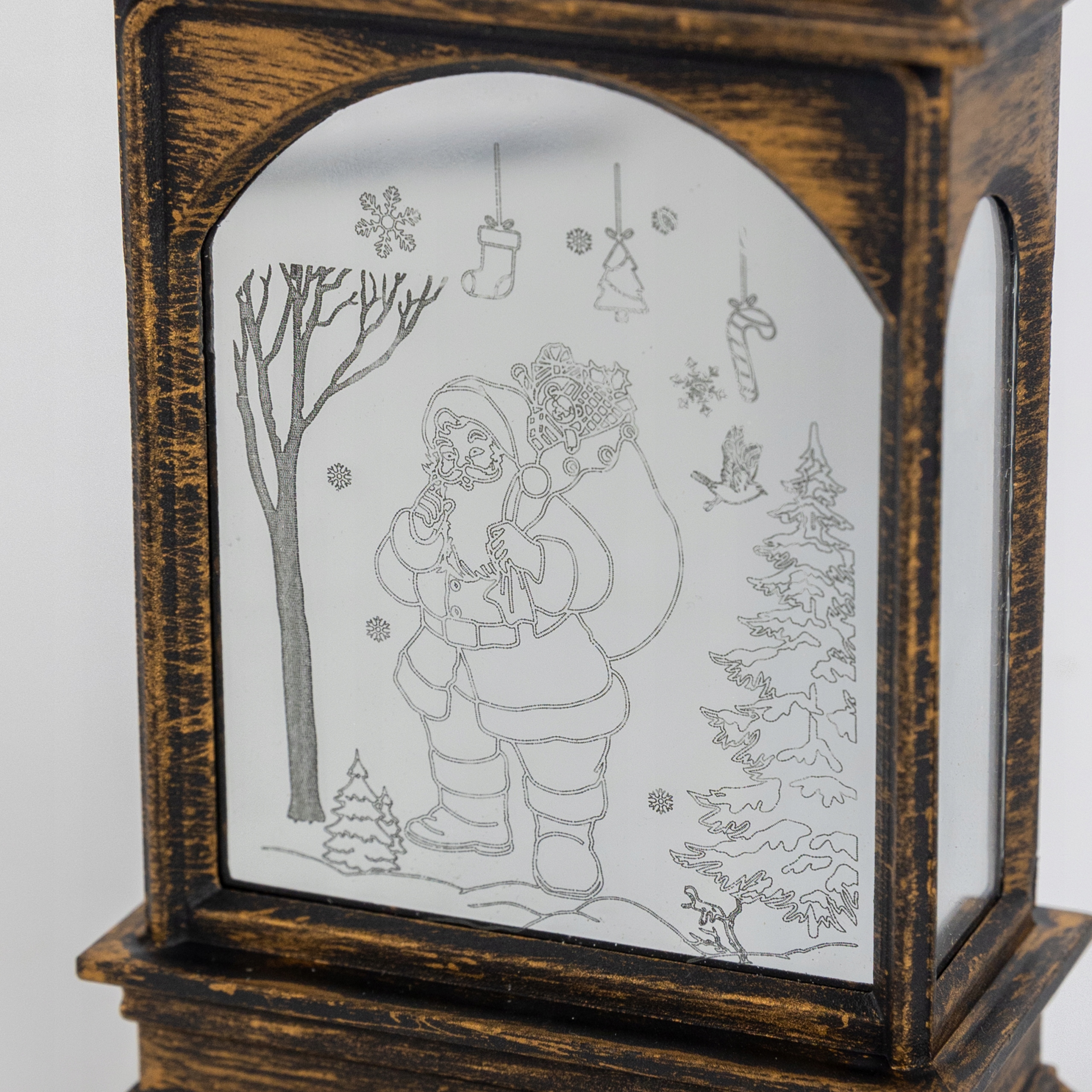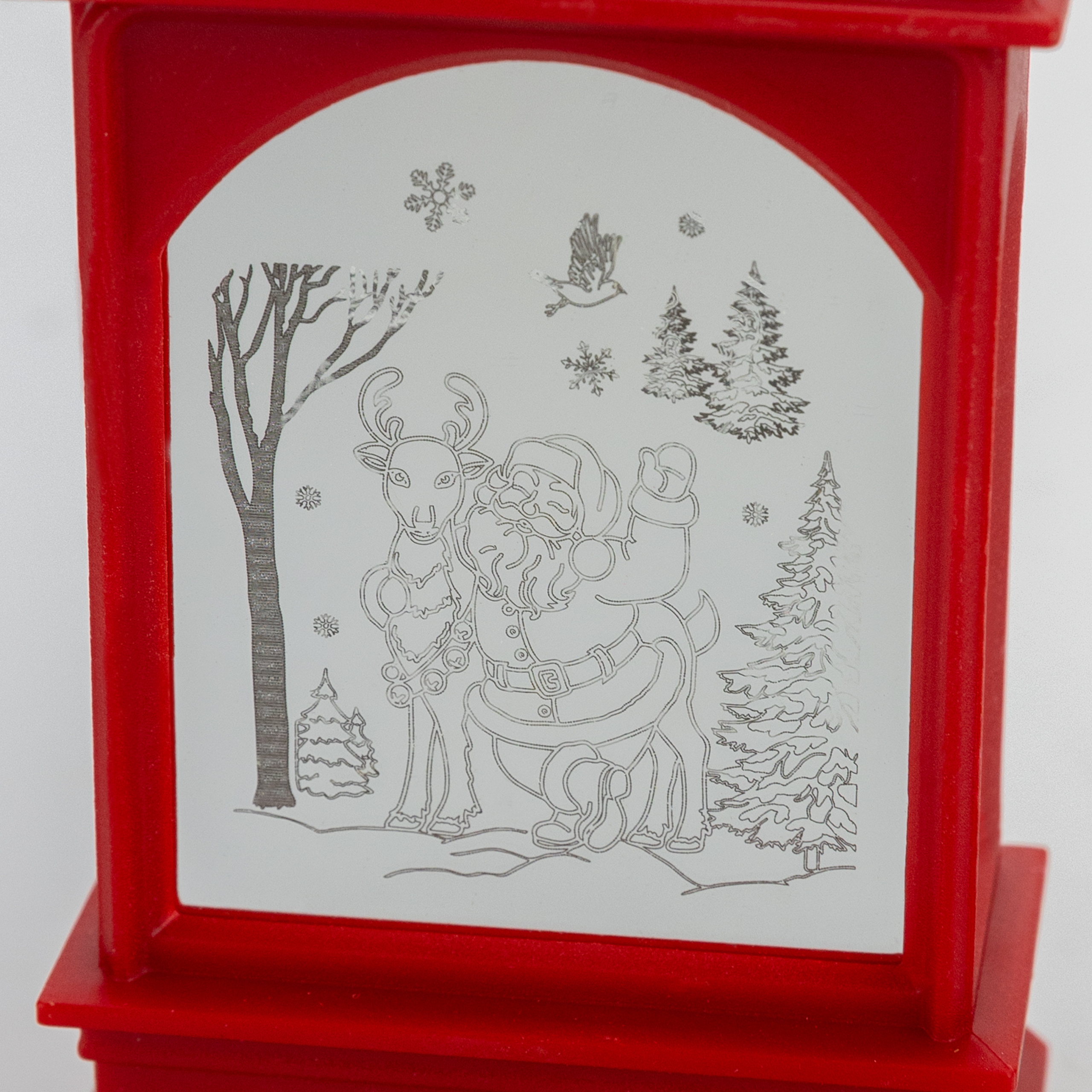 Рождественский фонарь с питанием от трех батареек LR44 (в комплекте). Прекрасно подойдет как отдельное украшение, так и как элемент новогоднего декора. Фонарь светит нейтральным светом благодаря мощному светодиоду. На обеих сторонах выгравированы зимние и рождественские иллюстрации. Его можно разместить на шкафу, камине, столе или повесить благодаря специальной петельке, установленной сверху.