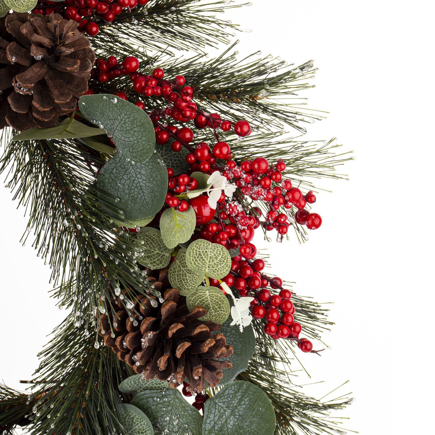 Рождественский венок 55см декоративный для дверей из зеленых веток и украшений