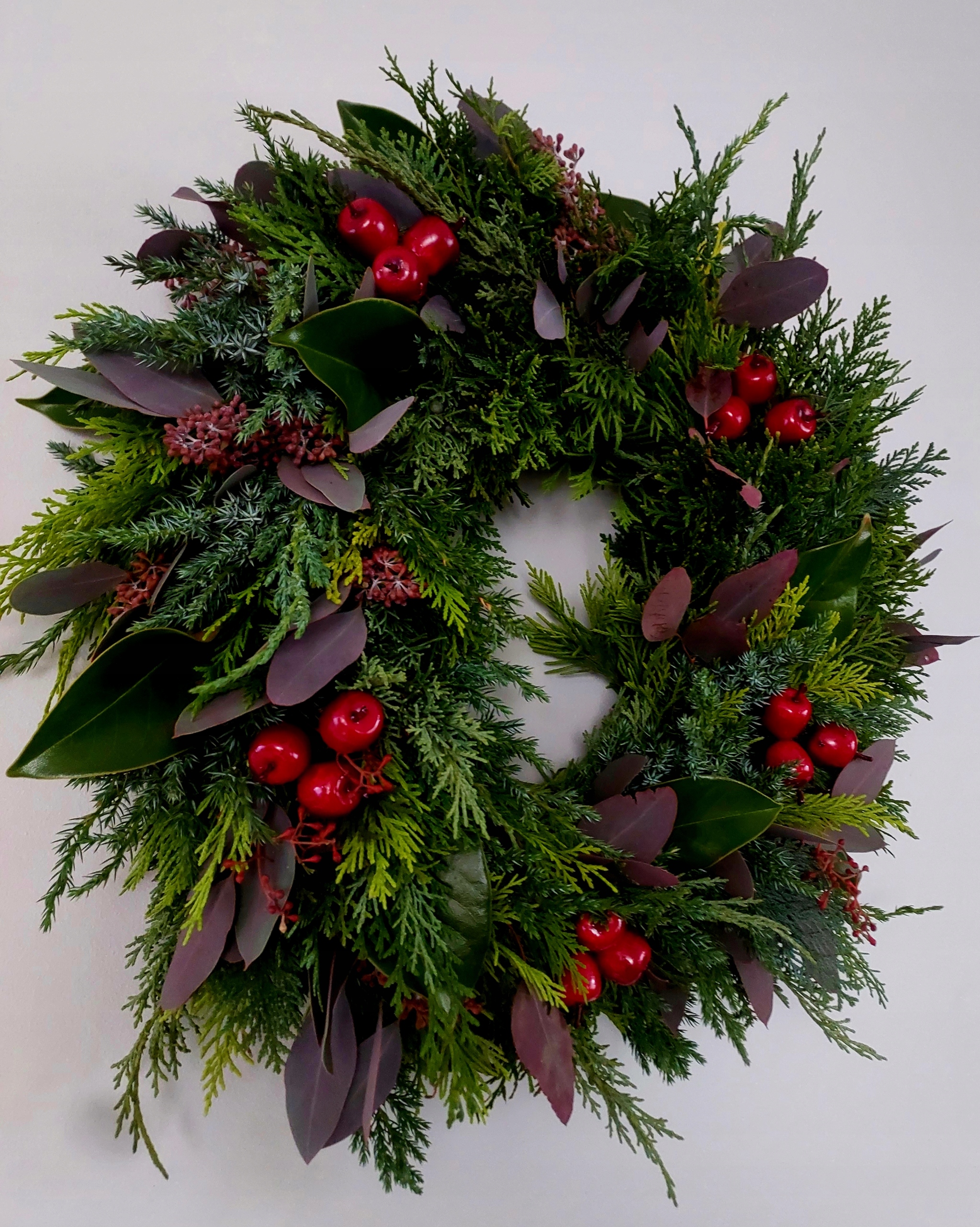 ВНИМАНИЕ! Мы не создаем венки «в наличии», чтобы ждать покупки в течение года, поскольку они могут потерять свою выразительность. Каждый венок может незначительно отличаться расположением ветвей – это доказательство того, что он изготовлен вручную, а не на машине.
