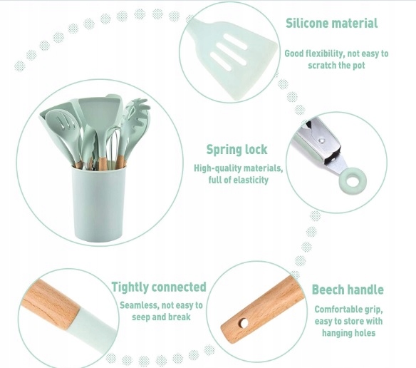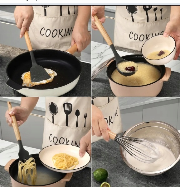 різні КОЛЬОРИ НАБІР КУХОННОГО ПОСУДУ СИЛІКОНОВИЙ ДЕРЕВ'ЯНИЙ 12 предметів