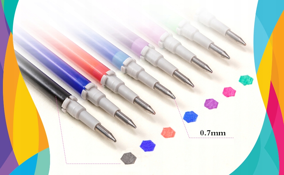 ✔ 8 гелевых ручек разных цветов. Гладкое письмо, наконечник 0,7 мм, нетоксичные чернила, не содержащие кислоты, не растекающиеся, быстросохнущие ручки.