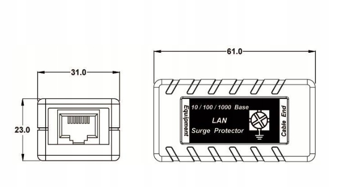 Ограничитель предназначен для защиты устройств, подключенных к сети Ethernet 10/100/1000 Мбит/с.