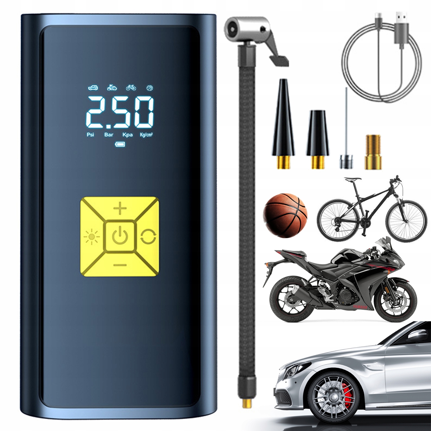 Замените прикрепленные аксессуары (американское сопло, шариковая насадка, сопло спасения), подходит для велосипедов, пассажирских автомобилей, грузовиков, мотоциклов, плавательных колес, шариков, шариков и т. Д.