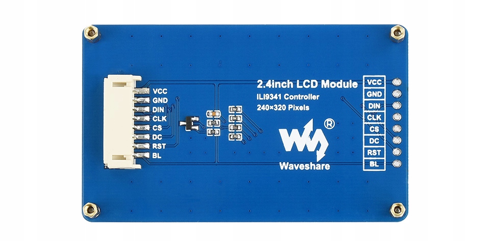Это 2,4-дюймовый модуль ЖК-дисплея, поддерживающий 65 000 цветов RGB. Дисплей имеет разрешение 240×320, интерфейс SPI.