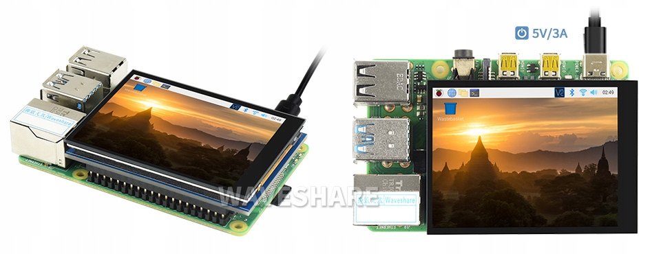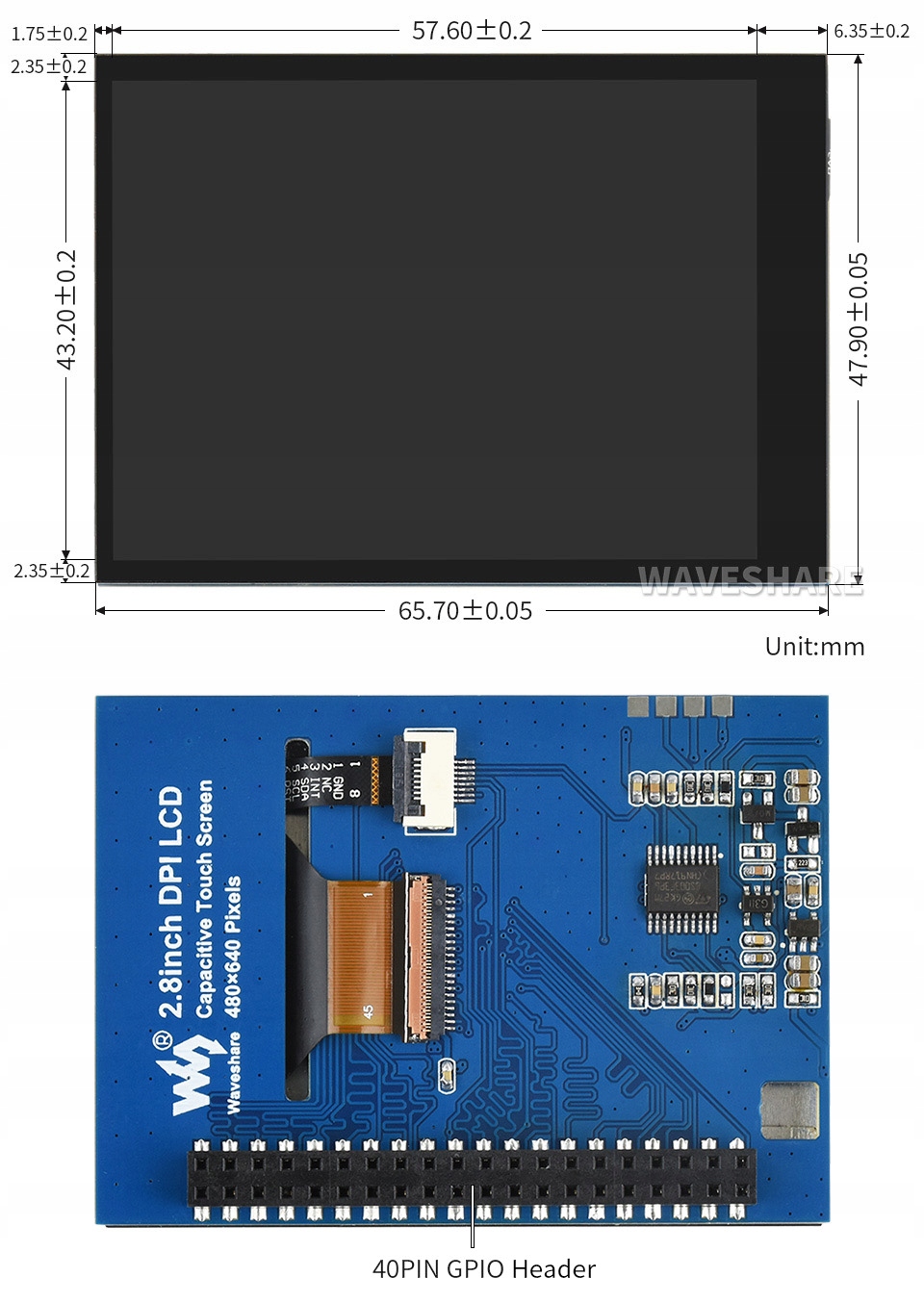 IPS LCD-дисплей диагональю 2,8 дюйма с разрешением 480x640 и емкостной сенсорной панелью. Управление дисплеем осуществляется через интерфейс Raspberry Pi DPI.