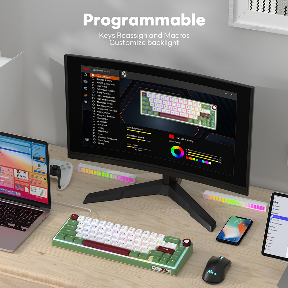 RK R65 МЕХАНИЧЕСКАЯ КЛАВИАТУРА 60% 65% ГОРЯЧАЯ ЗАМЕНА RGB для геймеров Мини-ручка G