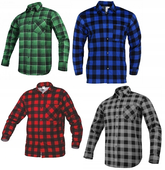Рубашка фланелевая с символом УМЕКС, сшита на Польской швейной фабрике из клетчатой фланелевой ткани, состоящей из 100% хлопка, застегивается спереди на пуговицы, длинные рукава отделаны манжетой, застегивающейся на пуговицы, отделаны воротником. на шее, на груди, на переднем нагрудном кармане, низ рубашки закатан.