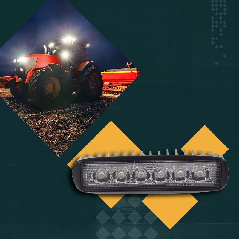 РОБОЧА ЛАМПА ПАНЕЛЬ 6 LED 18W 12V 24 IP67 E9 x2
