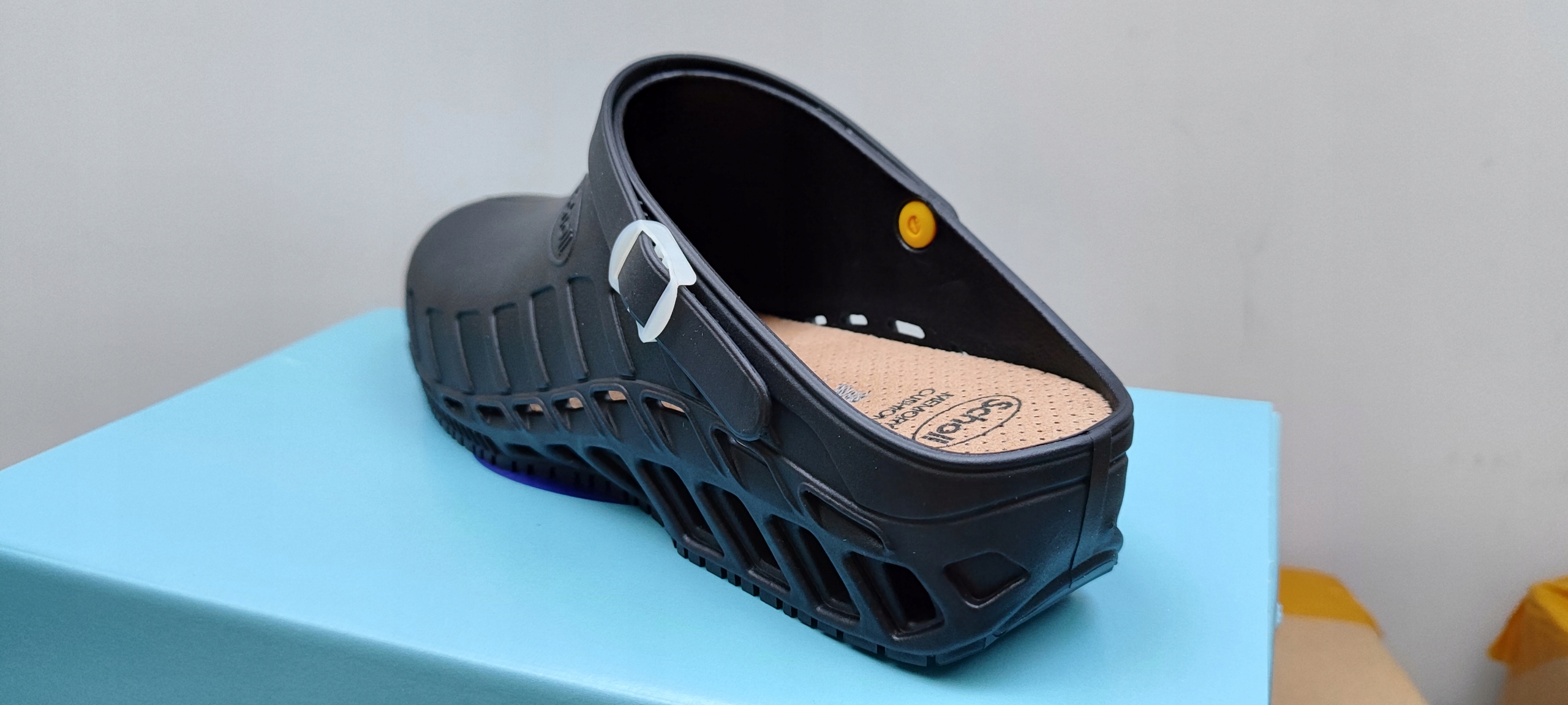 - ОЧИСТКА: Обувь, пригодную для стерилизации в автоклаве при 134° в соответствии с ПР EN 13832:2004. Вставку можно стерилизовать в автоклаве при температуре 121°. Обувь и стельку можно стирать в стиральной машине при температуре до 90°.