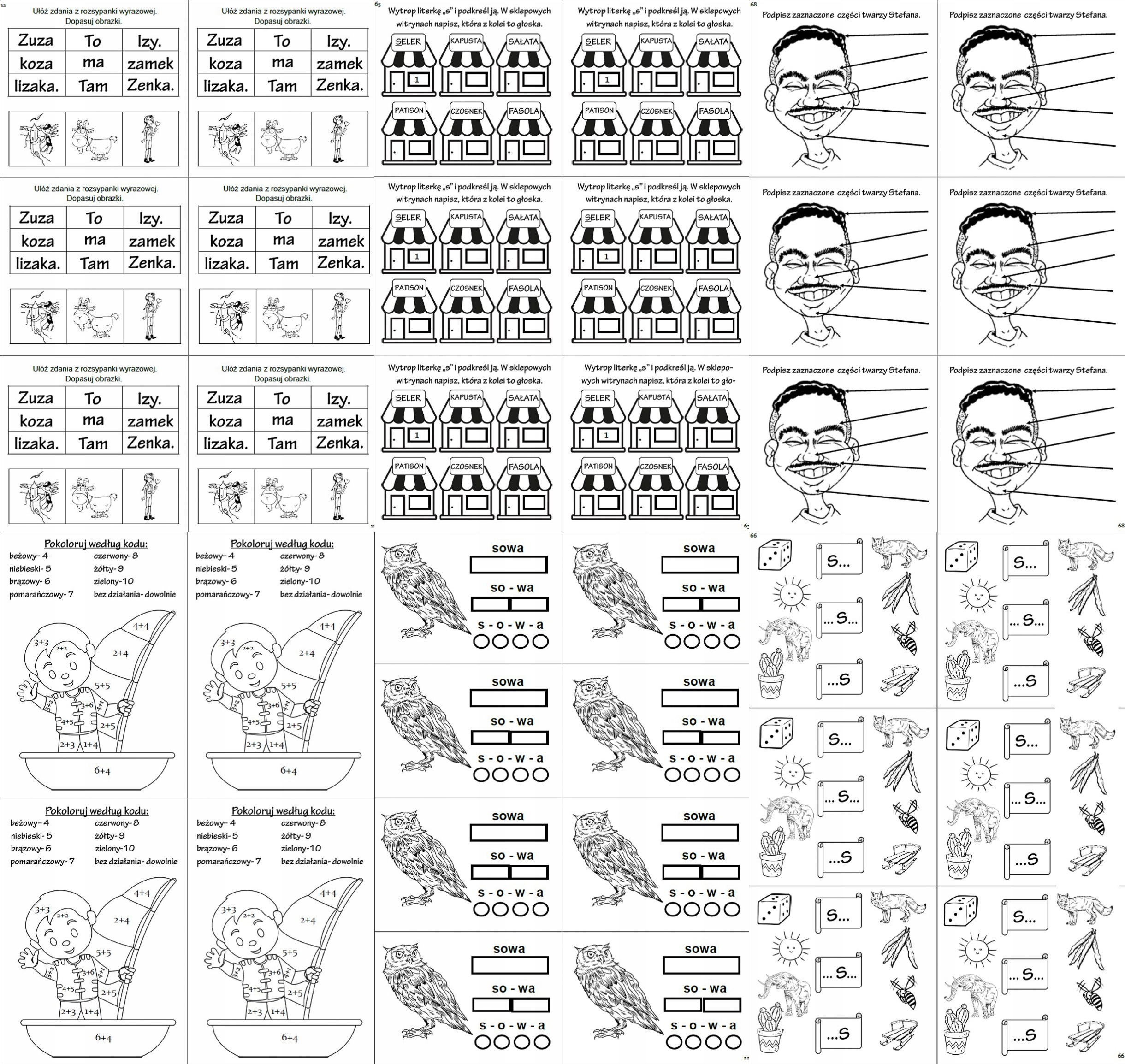 Каждая страница — это несколько одинаковых наклеек, которые вы можете использовать на уроке, в качестве домашнего задания или во время учебно-коррекционных занятий.