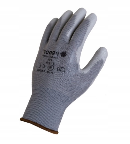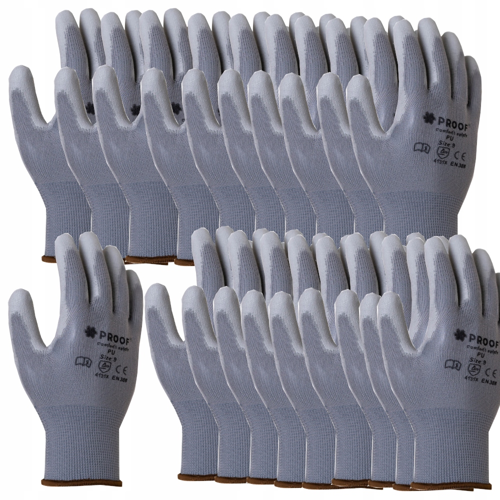 Перчатки, перчатки рабочие с полиуретановым покрытием, серые PROOF размер 10-XL - 10 пар