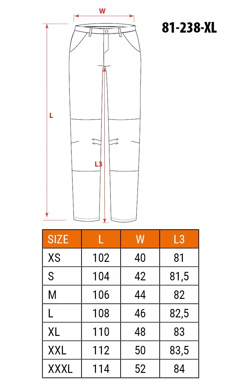УЗКИЕ РАБОЧИЕ БРЮКИ HD, РАЗМЕР ПОЯСА XL 81–238 NEO